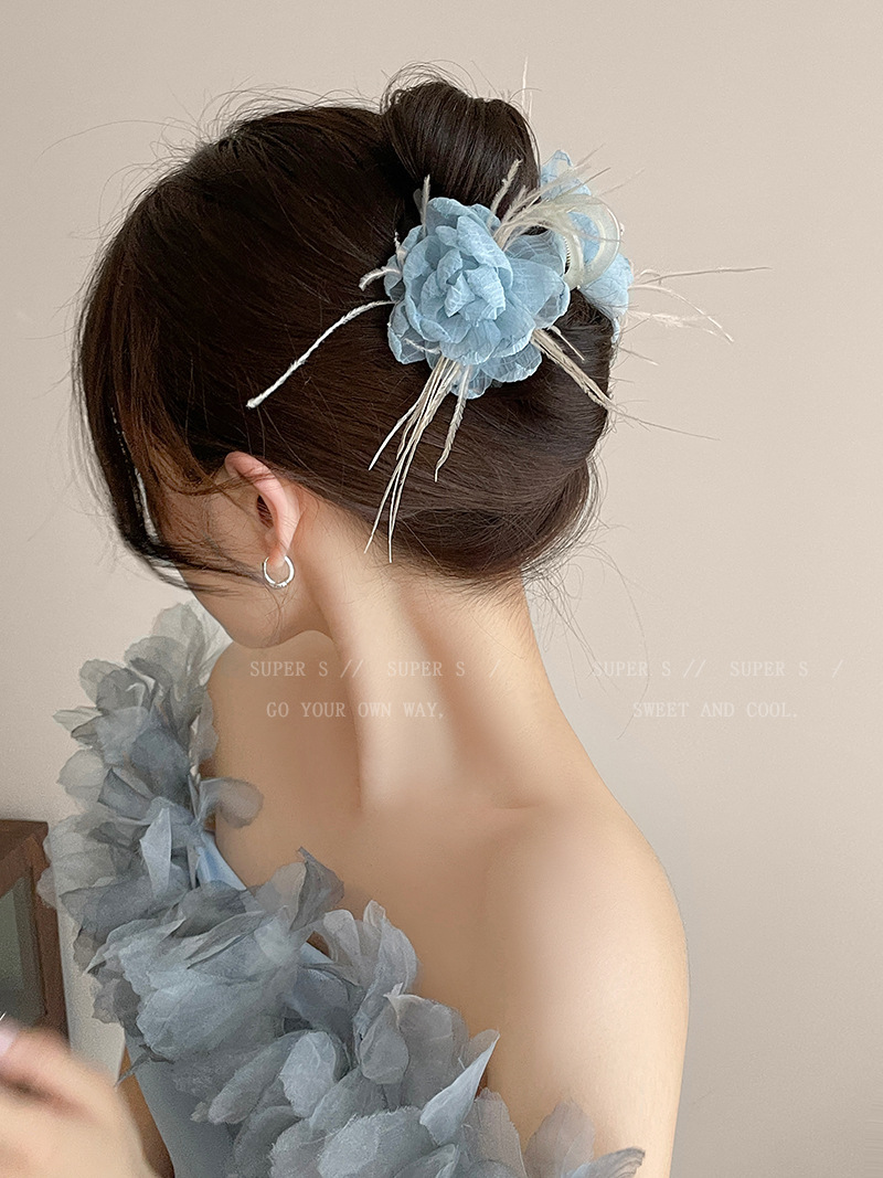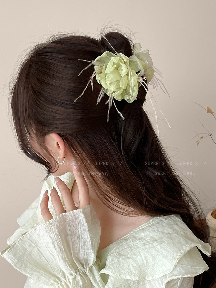 2025 봄 레이스 메쉬 꽃 깃털 클립 여성의 여름 신선한 상어 클립 우아한 올 매치 헤드웨어 헤드 플라워스토어 가기
