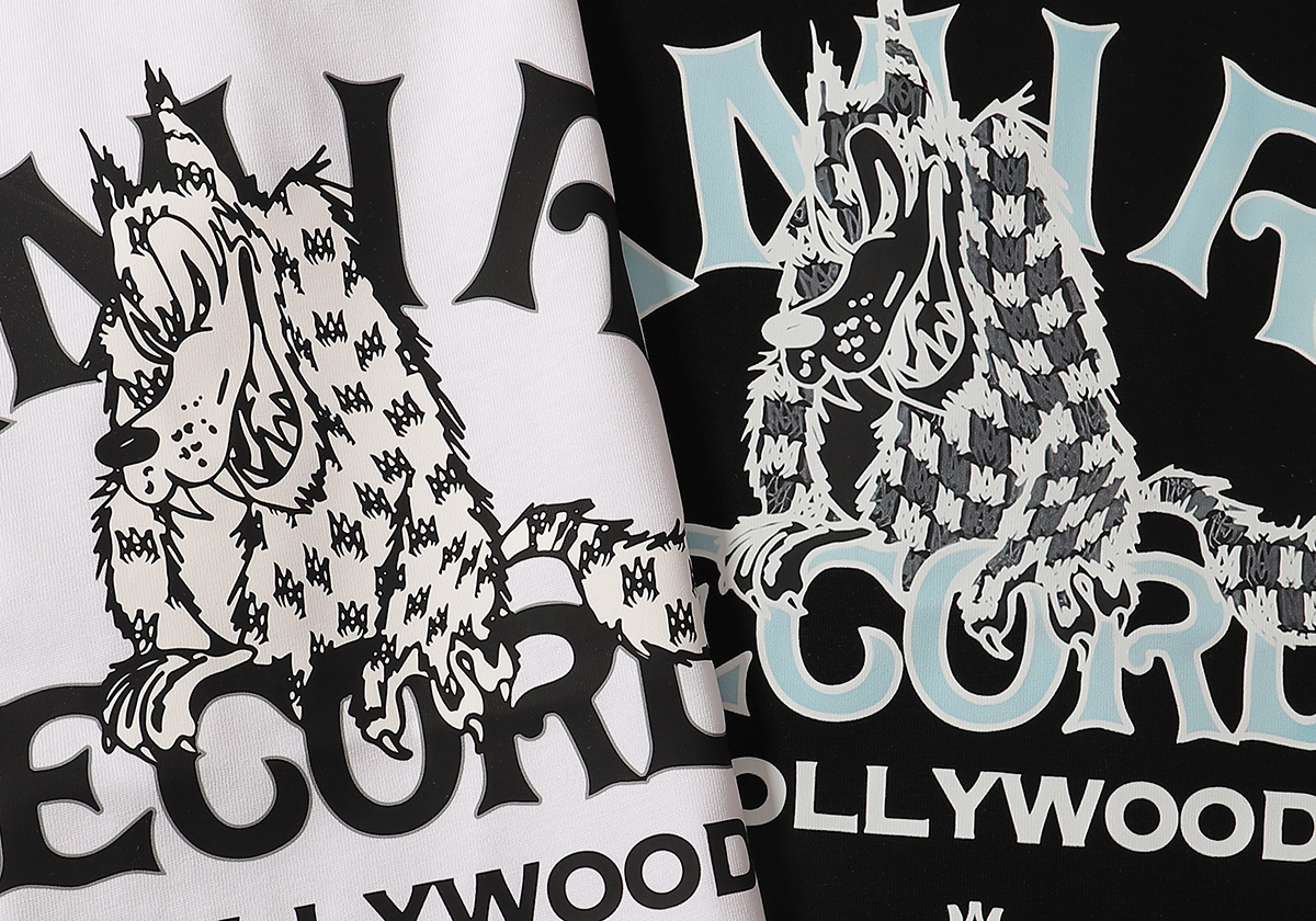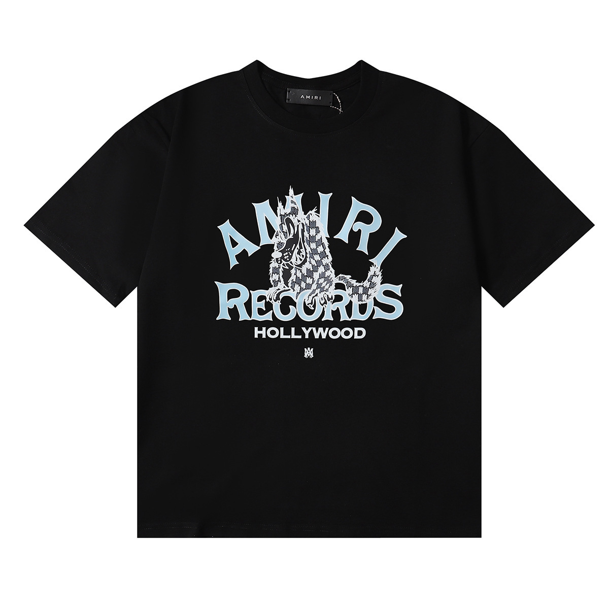 국경 간 대외 무역 AMIRI 만화 회색 늑대 인쇄 코튼 라운드 넥 캐주얼 반팔 남성 플러스 사이즈 풀오버 티셔츠스토어 가기