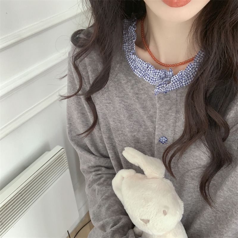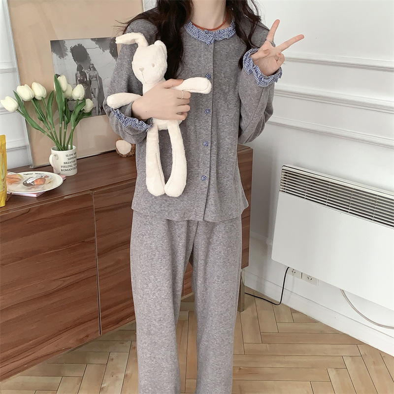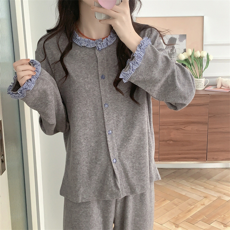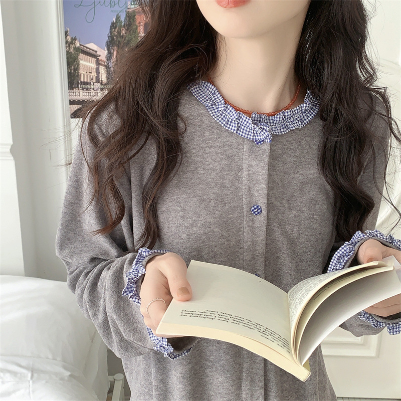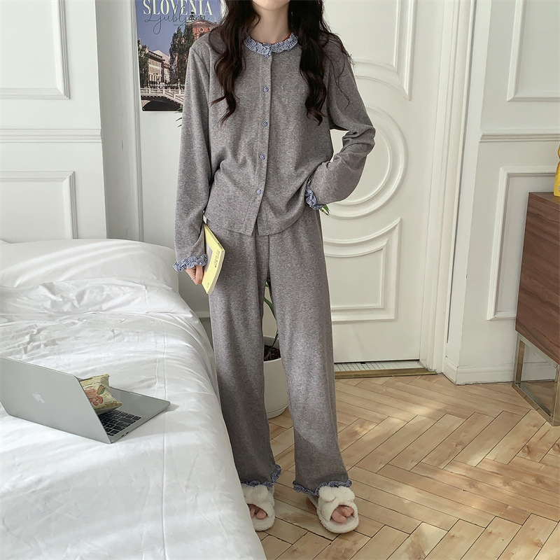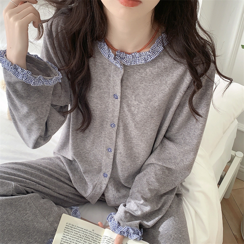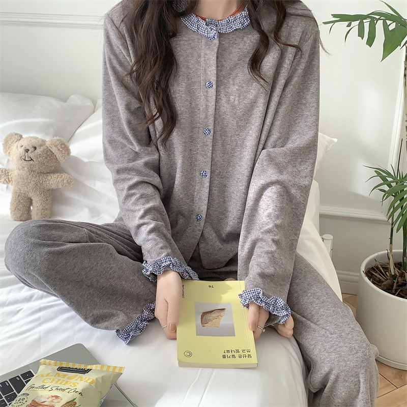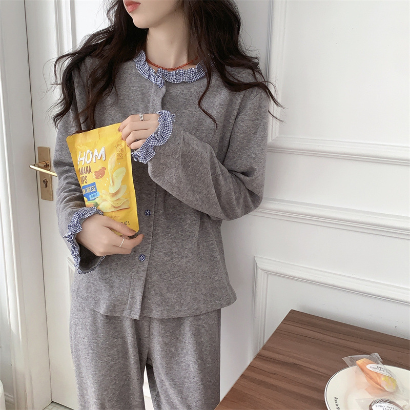 프랑스 스타일 러플 파자마 여성의 봄 가을 및 겨울 Ins 달콤한 인터넷 연예인 소녀의 겉옷 기숙사 홈 의류 세트스토어 가기