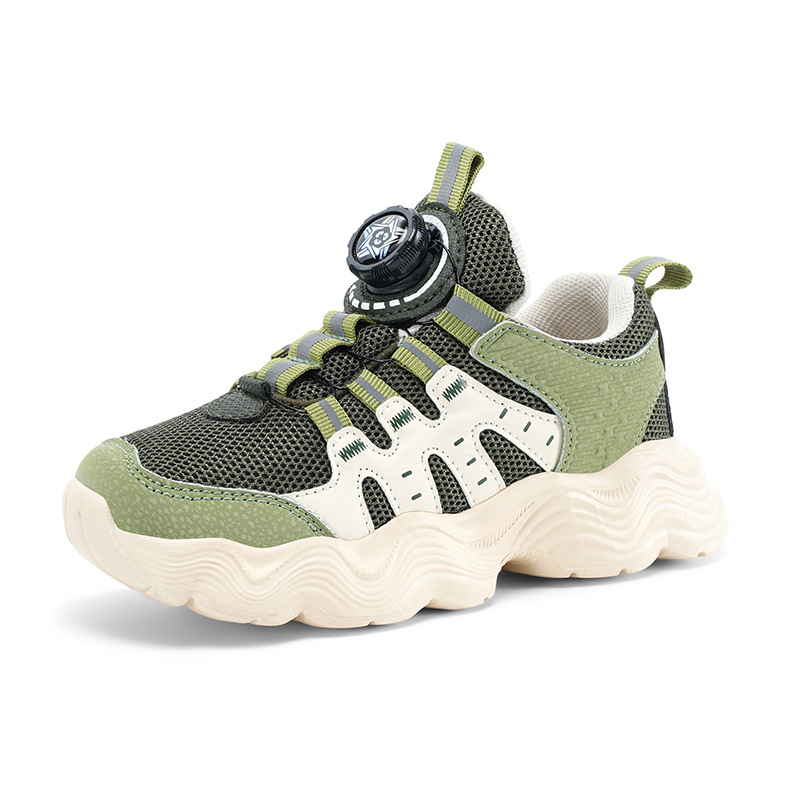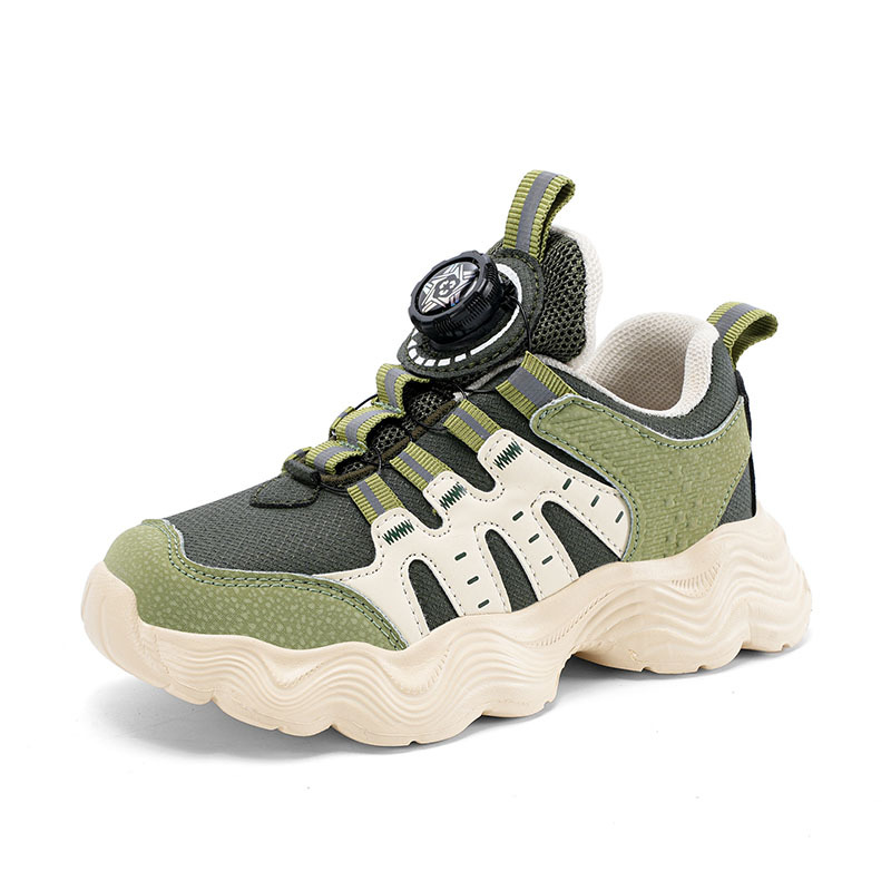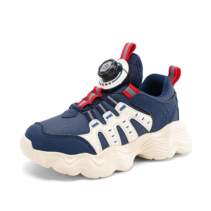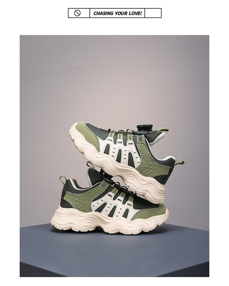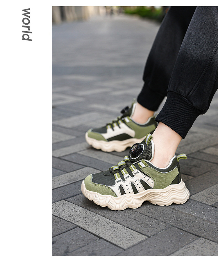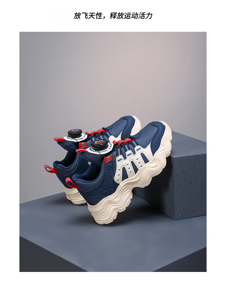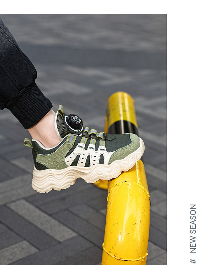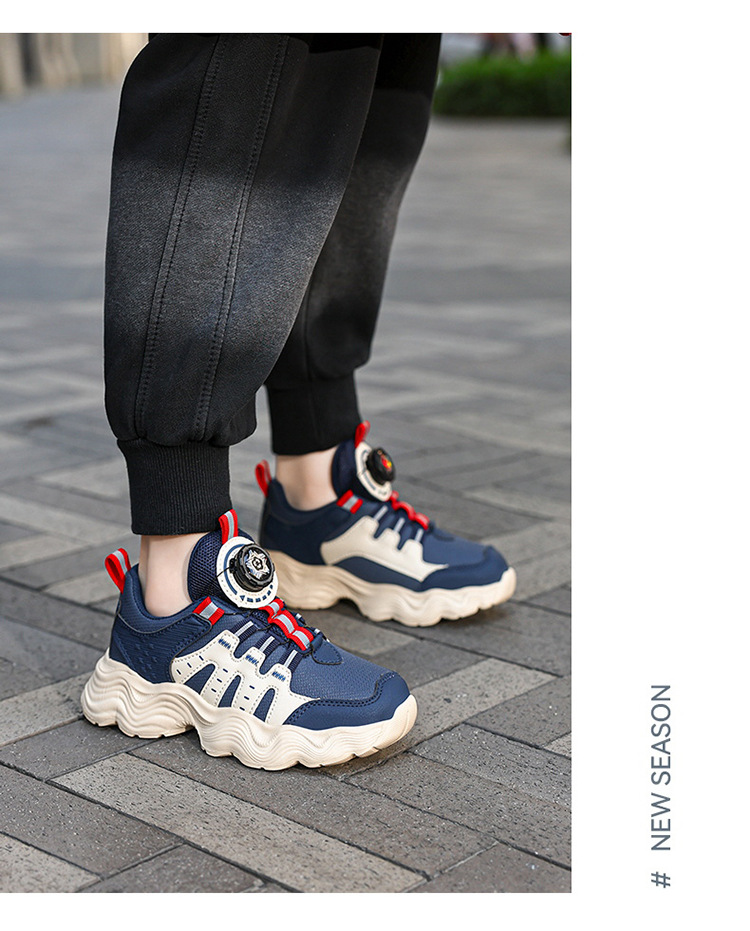 2501 어린이 신발 어린이 회전 버클 러닝 슈즈 소년, 중학교 및 초등학생을위한 로우 탑 가죽 메쉬 운동화 런닝 슈즈