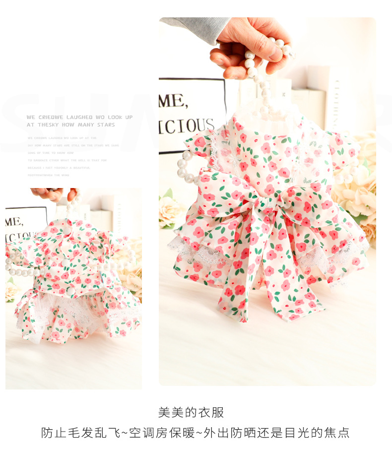 개 옷 봄과 여름 옷 얇은 고양이 공주 원피스 장미 꽃 로리타 작은 개 테디 애완 동물 6668