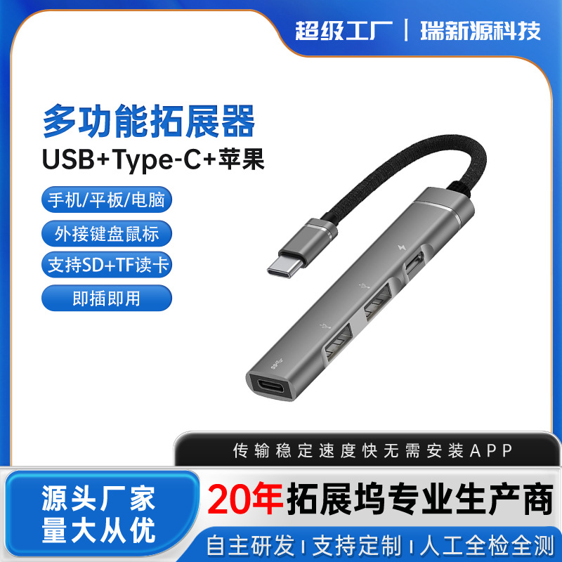 4포트 허브 확장 도크 다기능 휴대폰 확장 도크 컴퓨터 태블릿 USB 허브 타입C 충전 어댑터스토어 가기