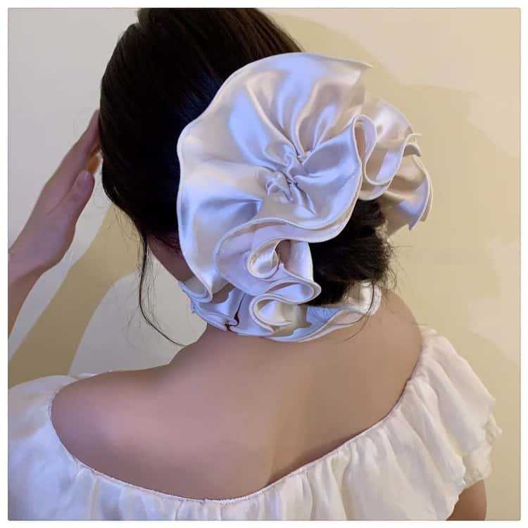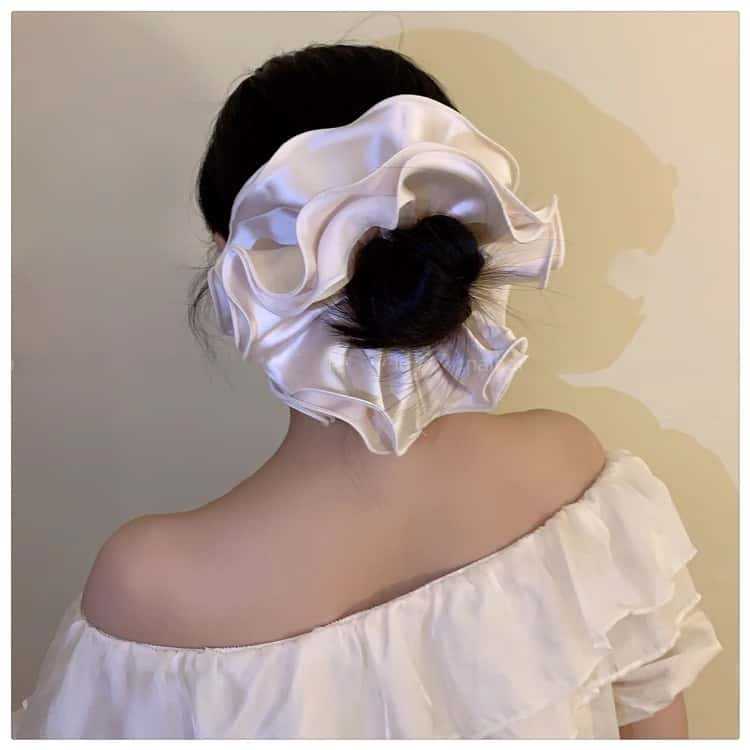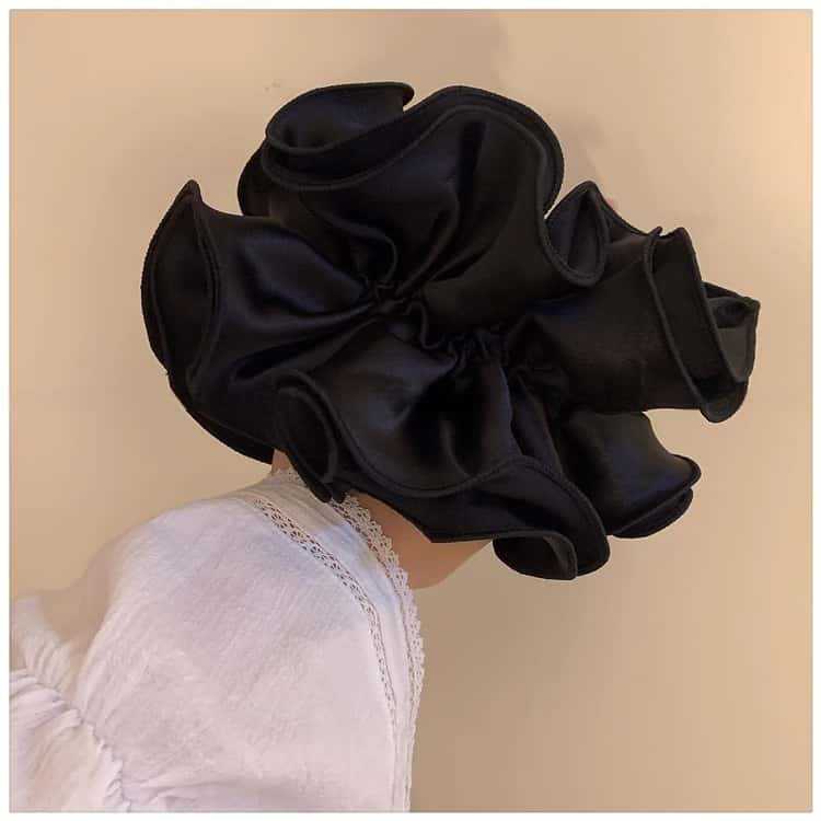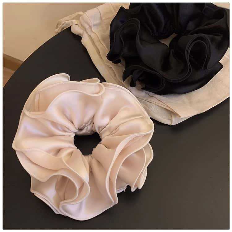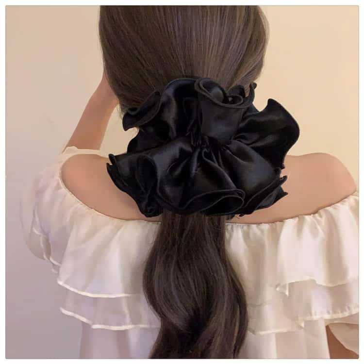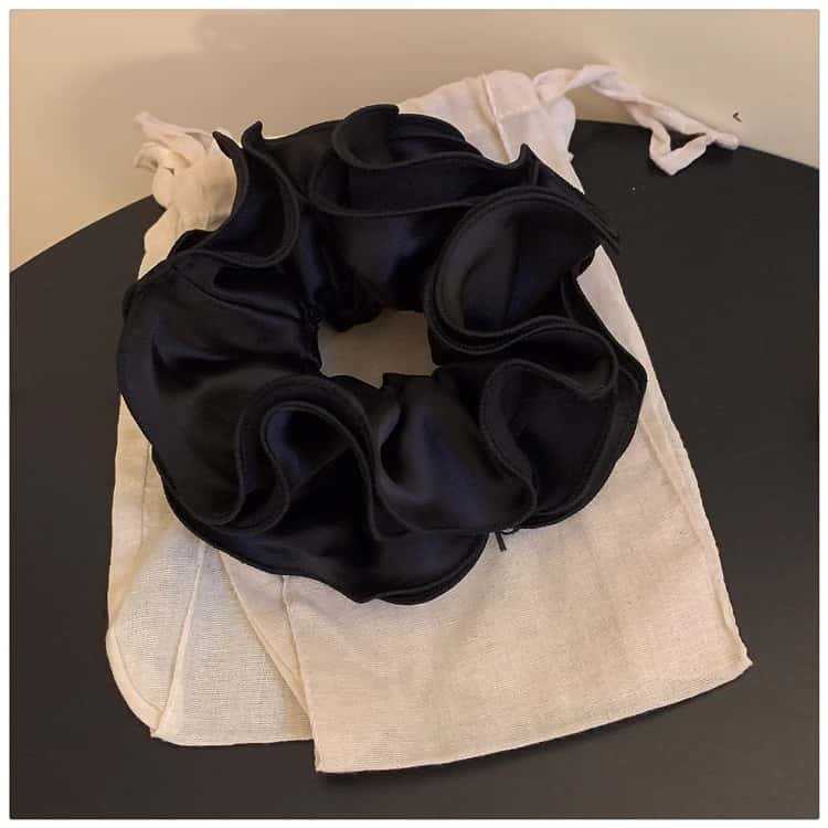 큰 장 머리 반지 한국 스타일 대형 나무 귀 가장자리 기질 새틴 블랙 더블 레이어 머리 공 머리 밧줄 소녀스토어 가기