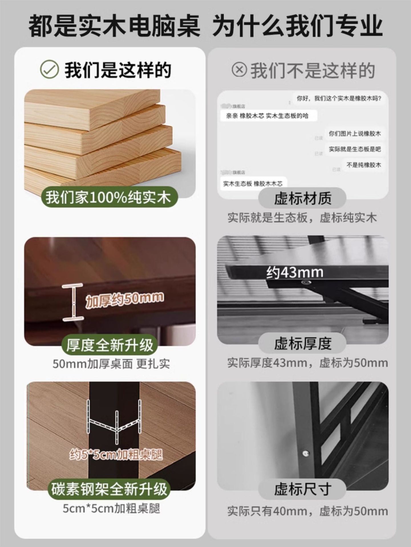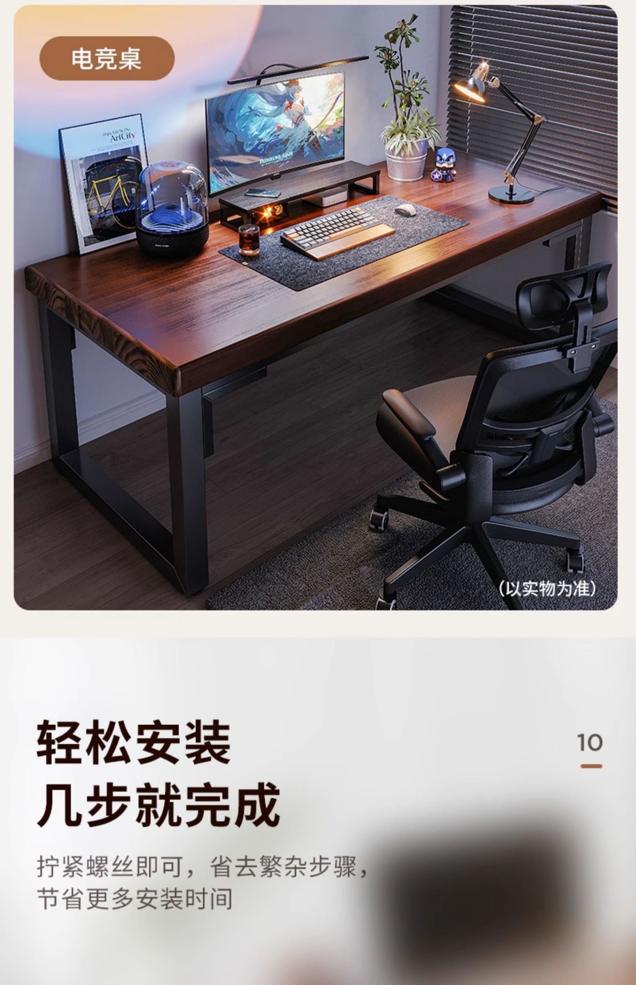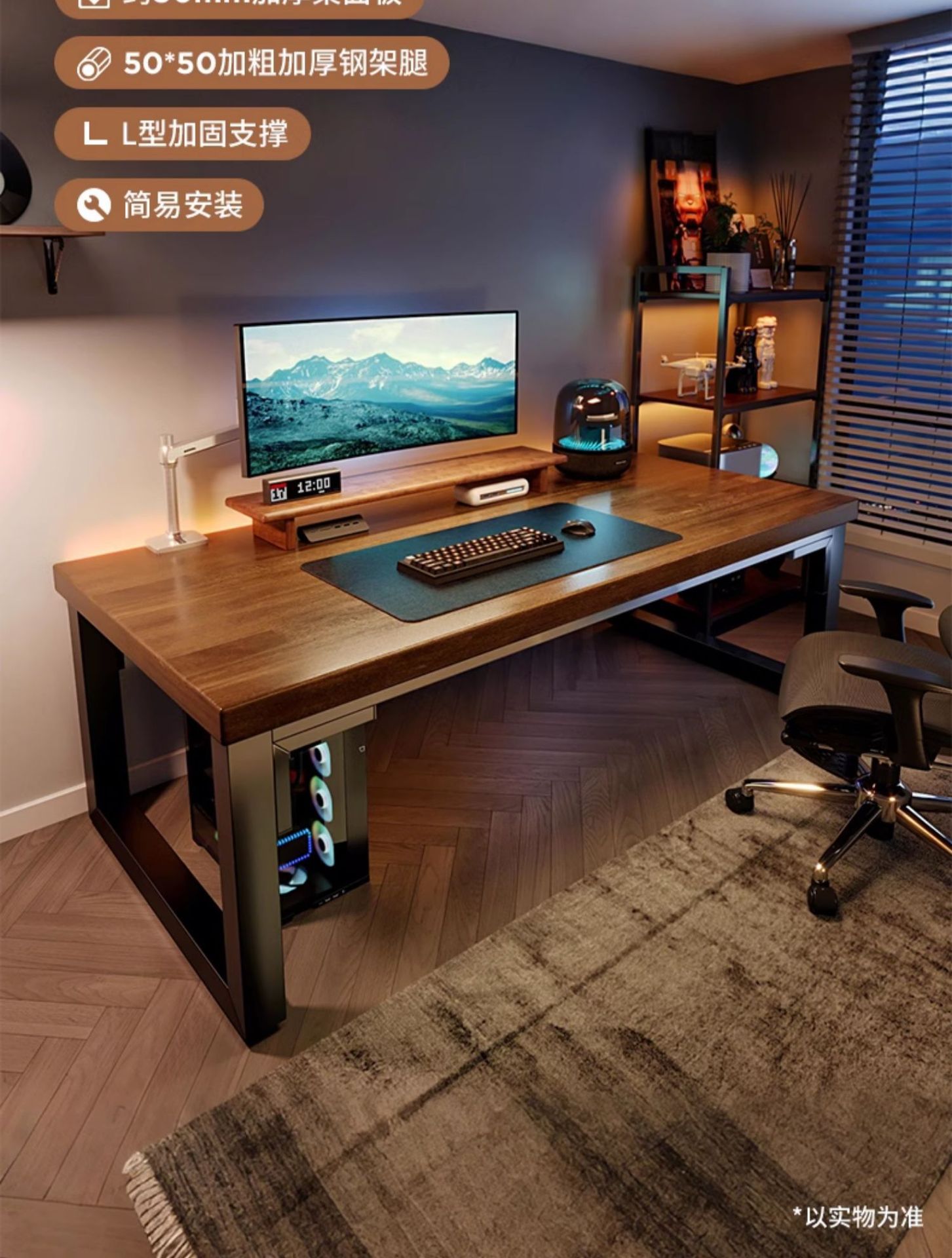实木电脑桌台式家用电竞桌子卧室长方形学生书桌写字桌双人办公桌