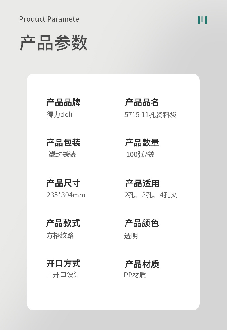 델리 5715-11 구멍 정보 가방 문서 가방 데이터 예비 가방 투명 A4 크기 경제적 소재