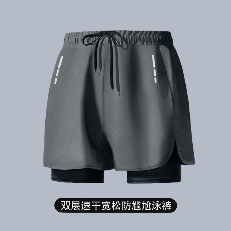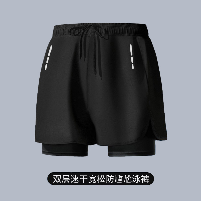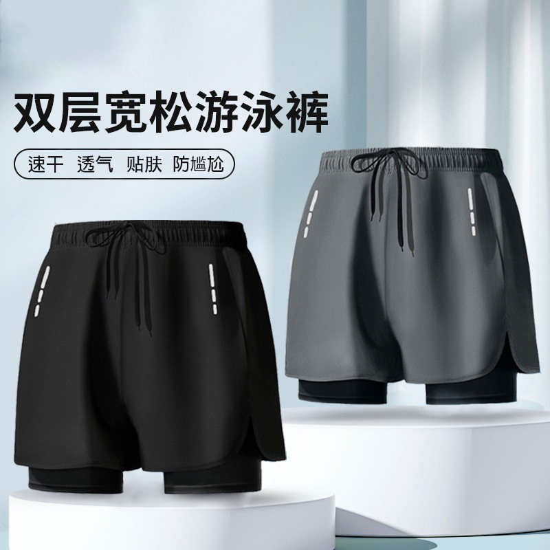 국경 간 수영 트렁크 남자의 느슨한 방황 이중층 수영 트렁크 남자 달리기 스포츠 바지 통기성 빠른 건조 온천 수영 트렁크