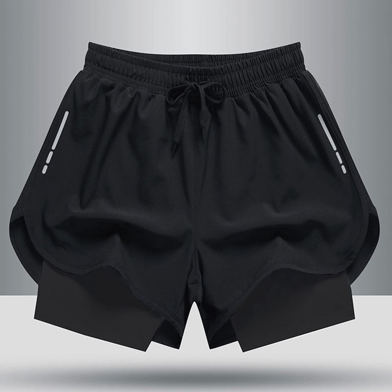 국경 간 수영 트렁크 남자의 느슨한 방황 이중층 수영 트렁크 남자 달리기 스포츠 바지 통기성 빠른 건조 온천 수영 트렁크스토어 가기