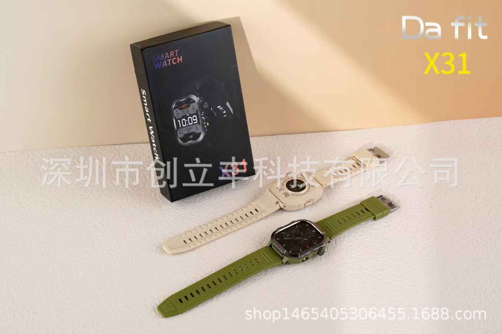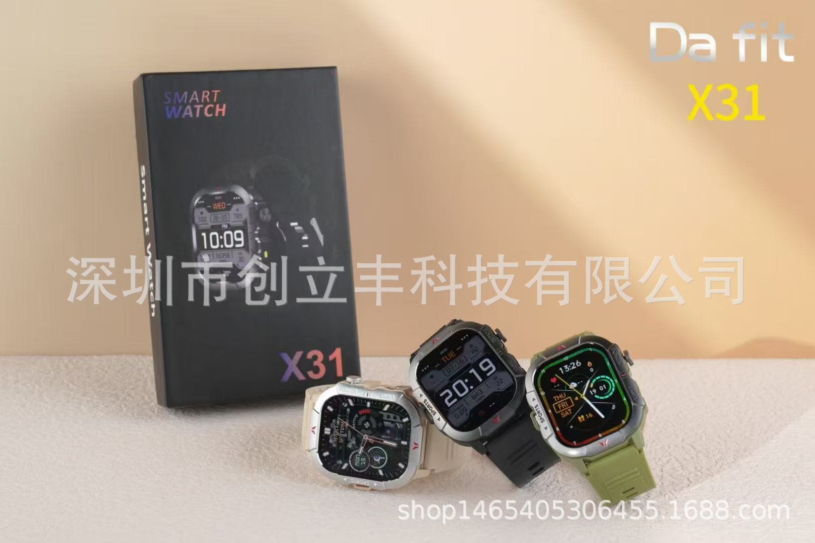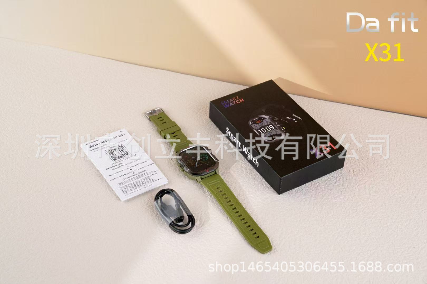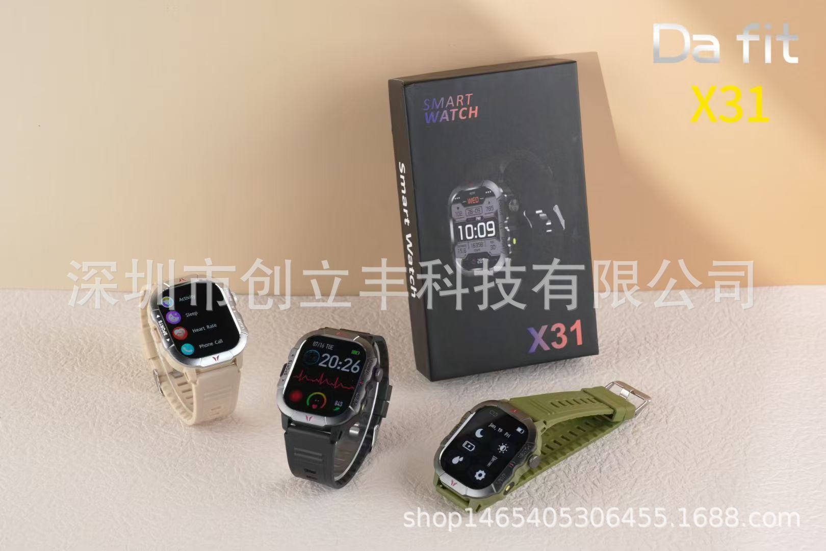 국경 X31 새로운 스마트 시계 야외 LED 조명 HD 대형 화면 블루투스 통화 심박수 혈액 산소 건강 테이블