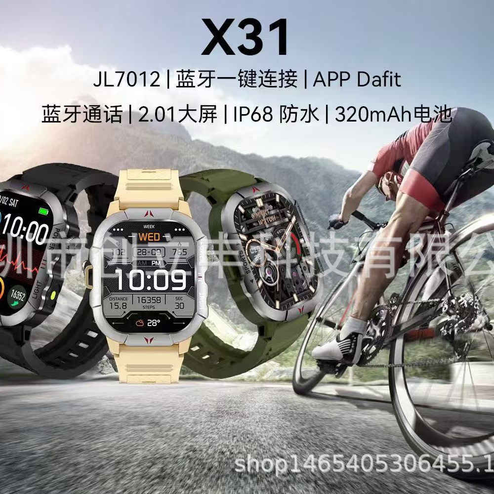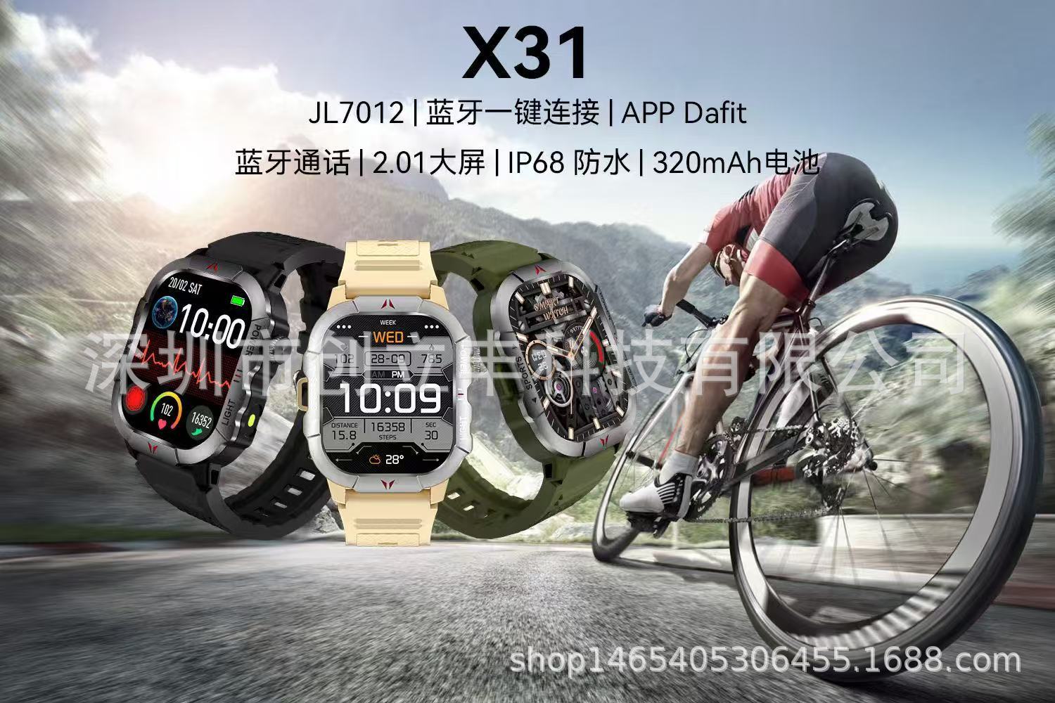 국경 X31 새로운 스마트 시계 야외 LED 조명 HD 대형 화면 블루투스 통화 심박수 혈액 산소 건강 테이블스토어 가기