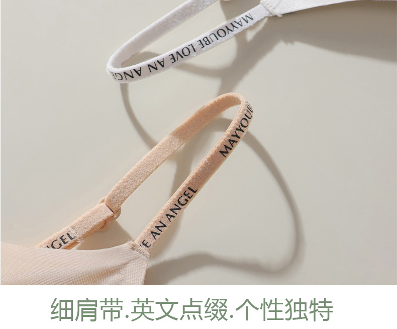 Tracless 속옷 여성용 얇은 작은 가슴 푸시 업 Rimless 튜브 방지 슬림 피스 브래지어 얇은 어깨 스트랩