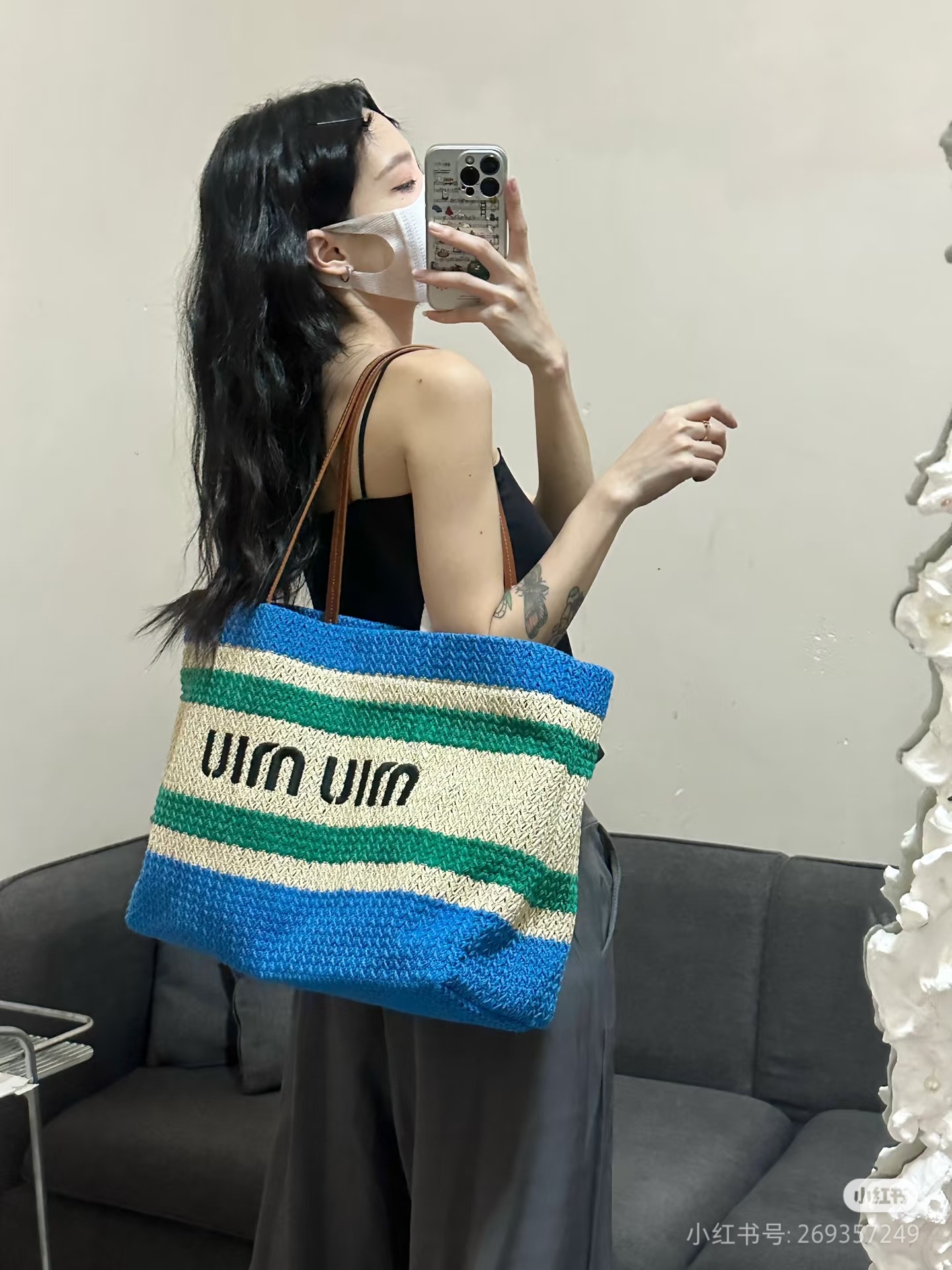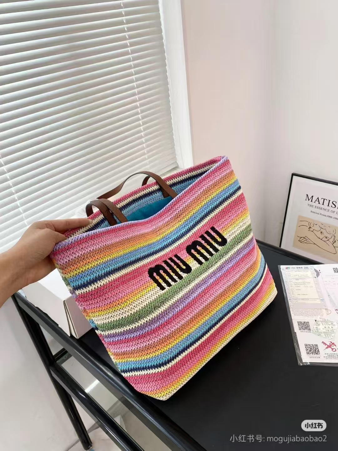 Miaojia 대비 컬러 비치 밀짚 가방 수평 토트 백 단일 어깨 크로스 바디 대용량 쇼핑백 캐주얼 미우 여성용 가방스토어 가기