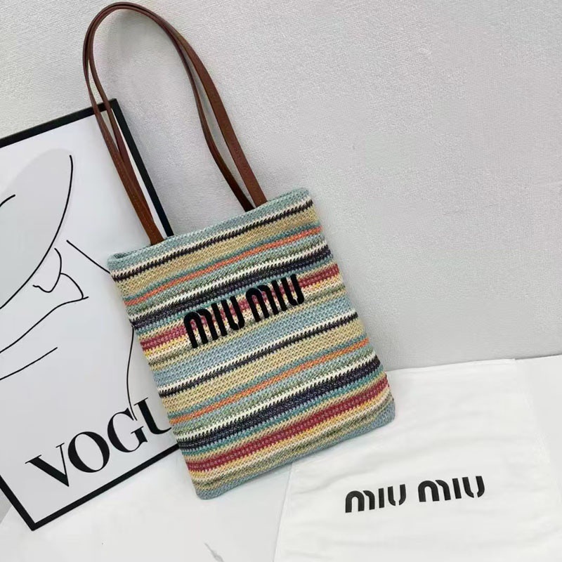Miaojia 대비 컬러 비치 밀짚 가방 수평 토트 백 단일 어깨 크로스 바디 대용량 쇼핑백 캐주얼 미우 여성용 가방