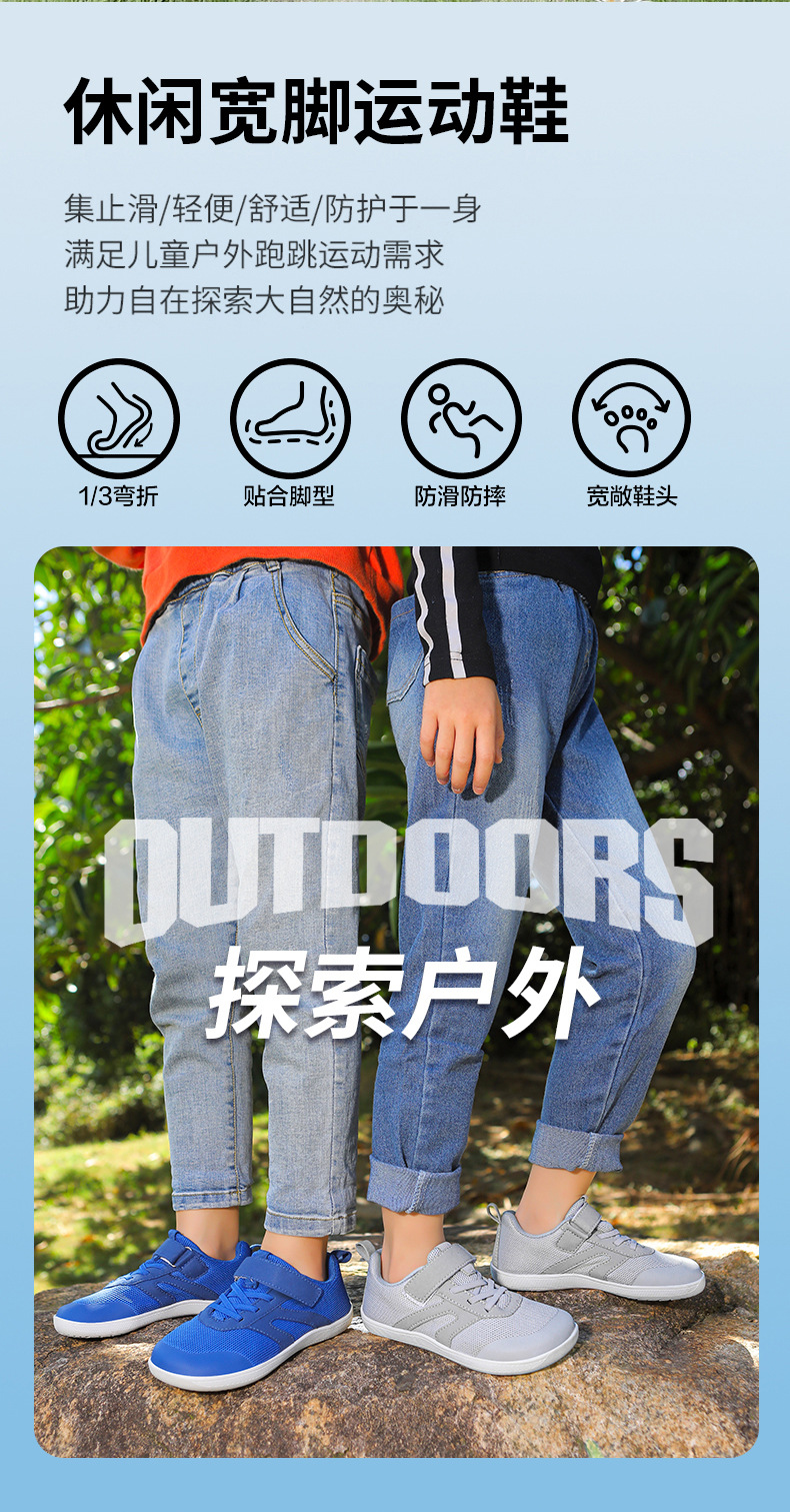 2024 새로운 어린이 와이드 신발 미끄럼 방지 편안한 통기성 싱글 레이어 신발 와이드 헤드 맨발 소프트 단독 착용 방지 경량 캐주얼 신발