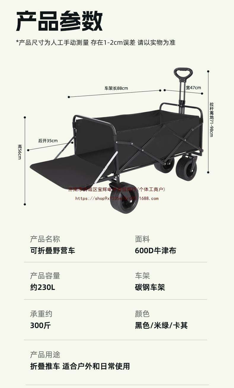 야외 캠핑 접이식 트롤리 대형 캠핑 피크닉 캠프 자동차 트롤리 작은 트레일러 스톨 작은 트레일러스토어 가기
