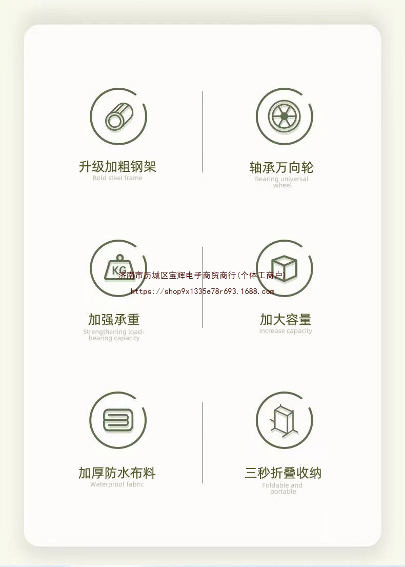 • [두꺼운 철제 프레임丨두꺼운 천]-[베이지] 8inch 고무바퀴/브레이크 없음/내하중 200kg