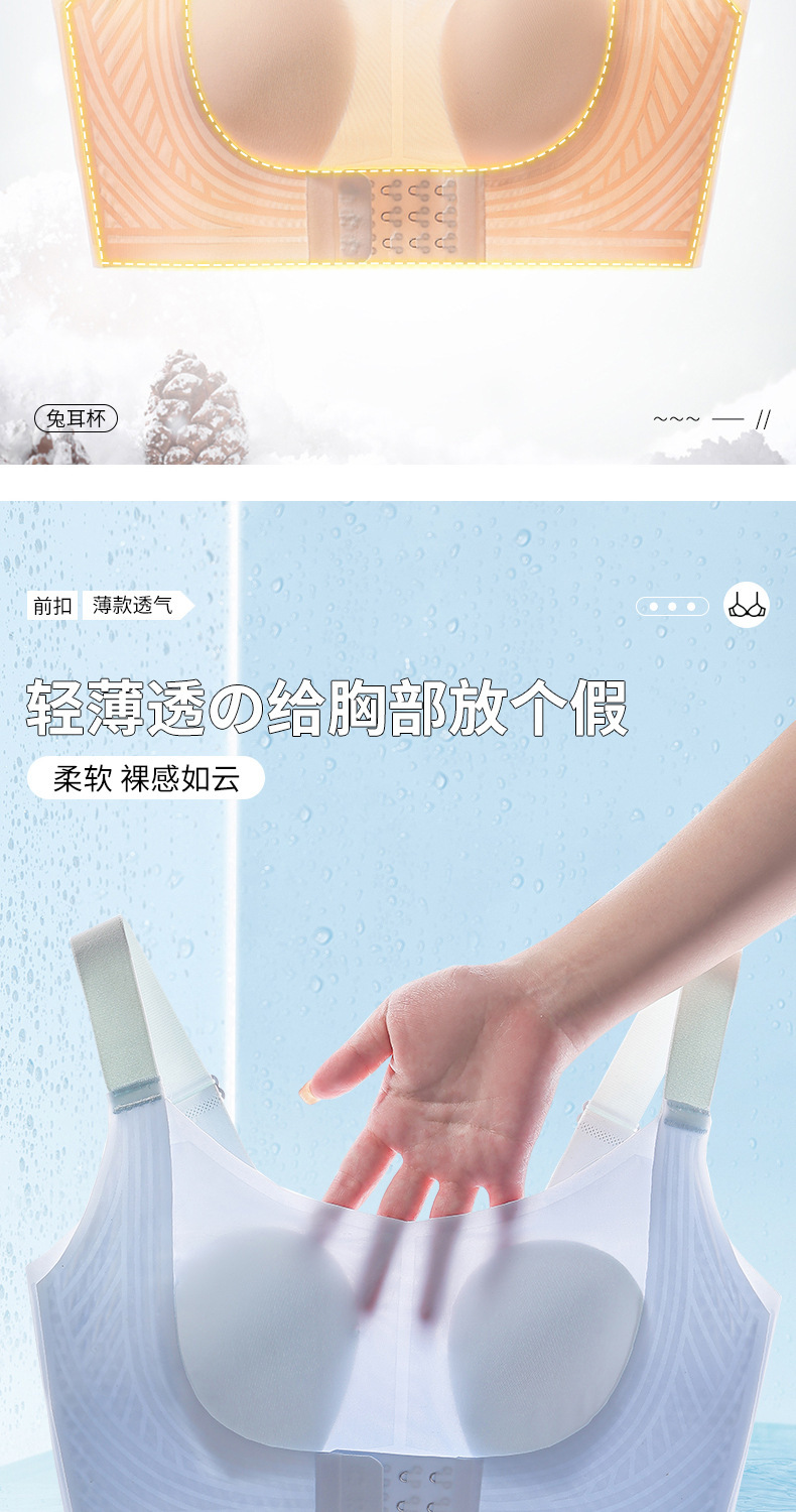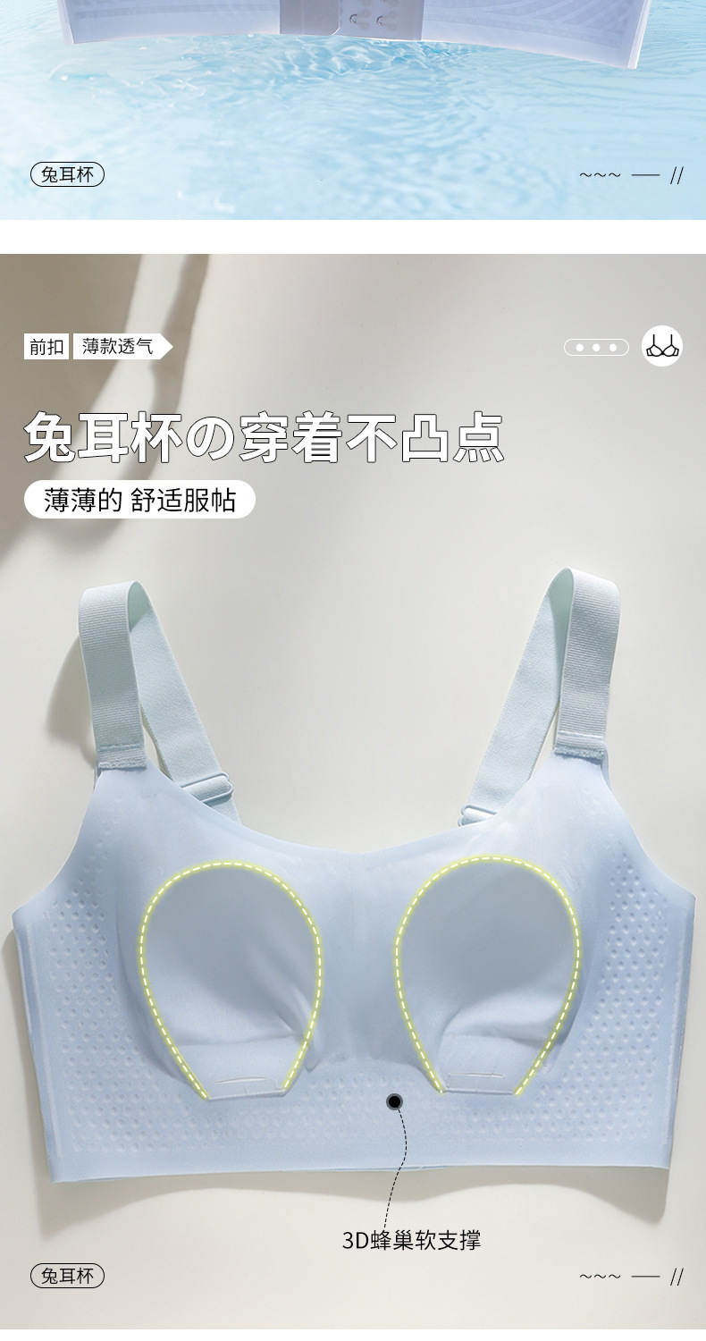 토끼 귀 컵 아이스 실크 통기성 속옷 여성의 가려움 어퍼 브래킷 대형 가슴 전시 작은 반지 수집 방지 브래지어
