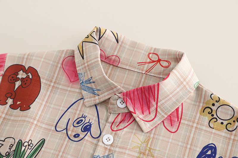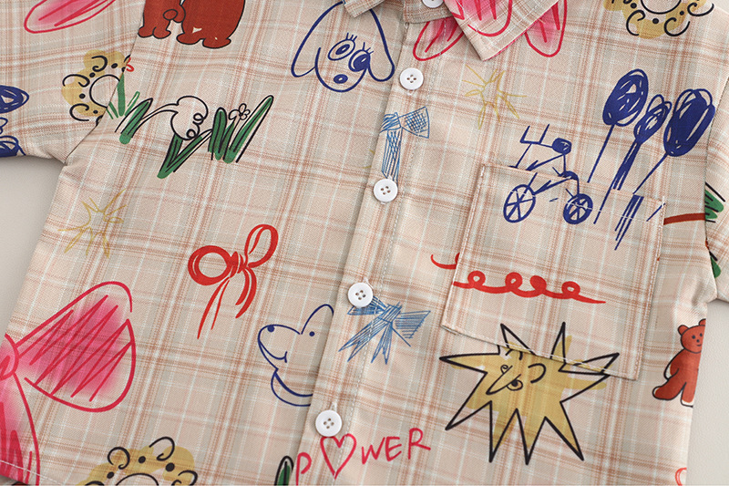 남자들의 여름 서양식 인터넷 인기 반팔 세트 2025 년 새 여름 어린이 격자 무늬 셔츠 반팔 세트