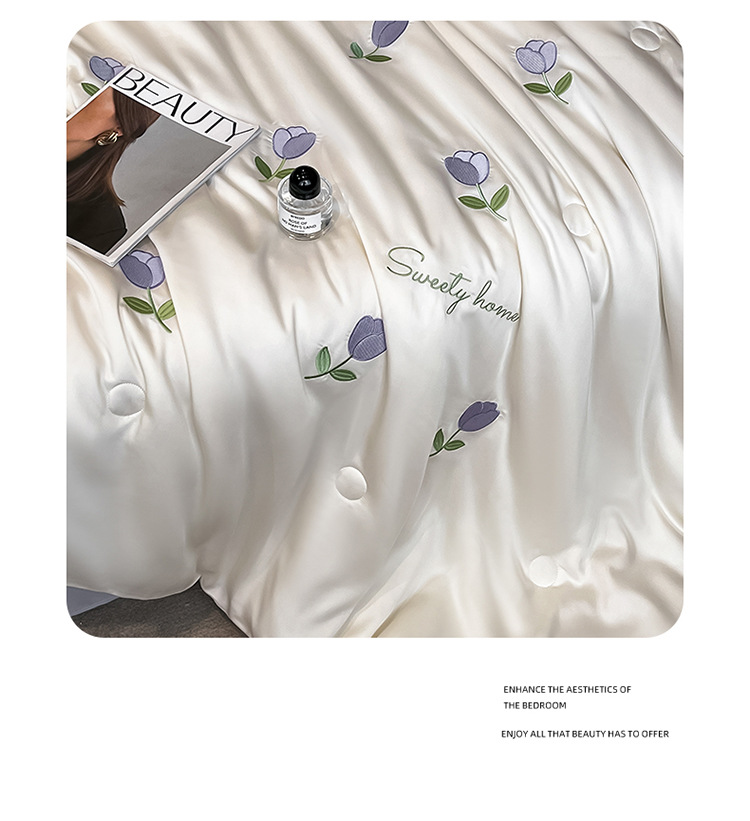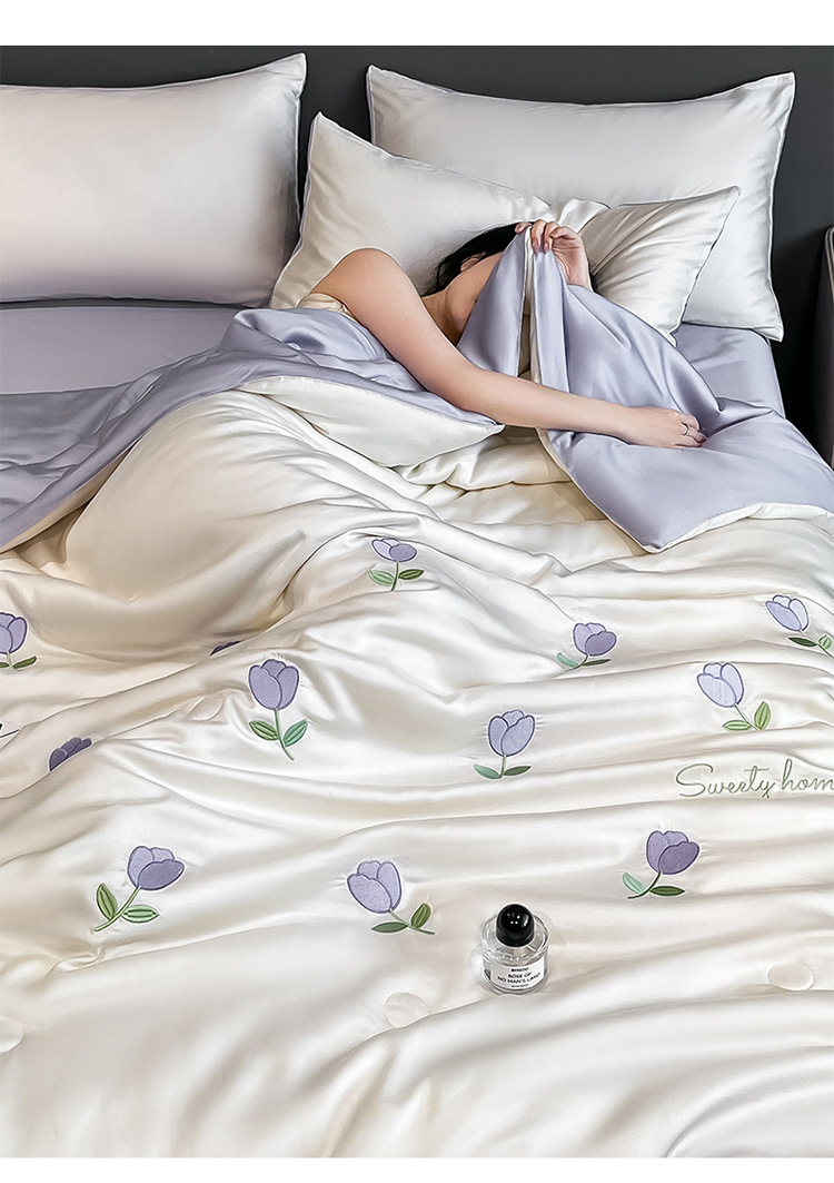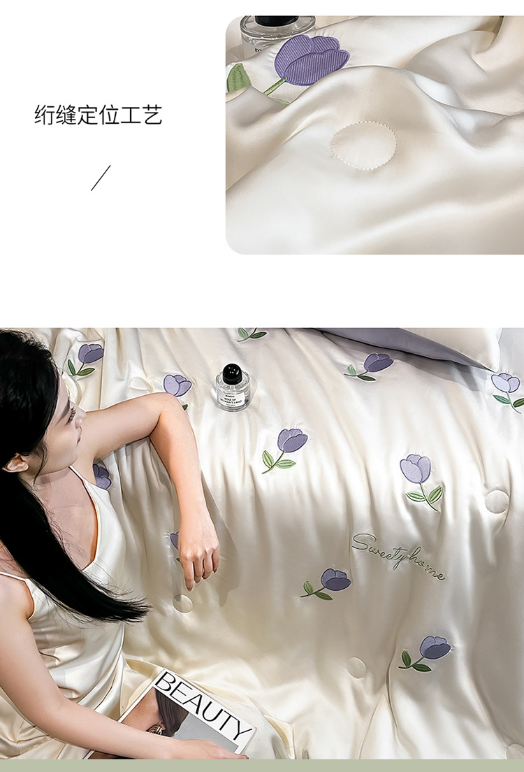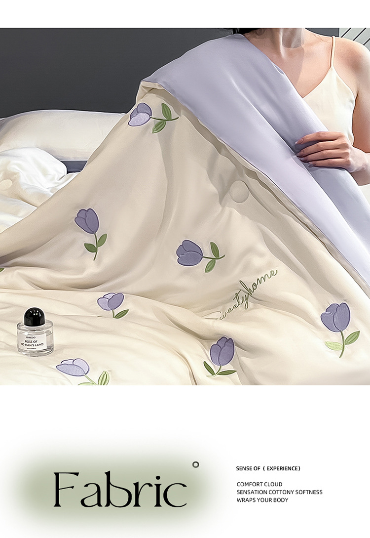 • 튤립-밀크 화이트 퍼플 [피부 친화적이고 부드러우며, 알몸으로 자도 실크처럼 매끄러움]