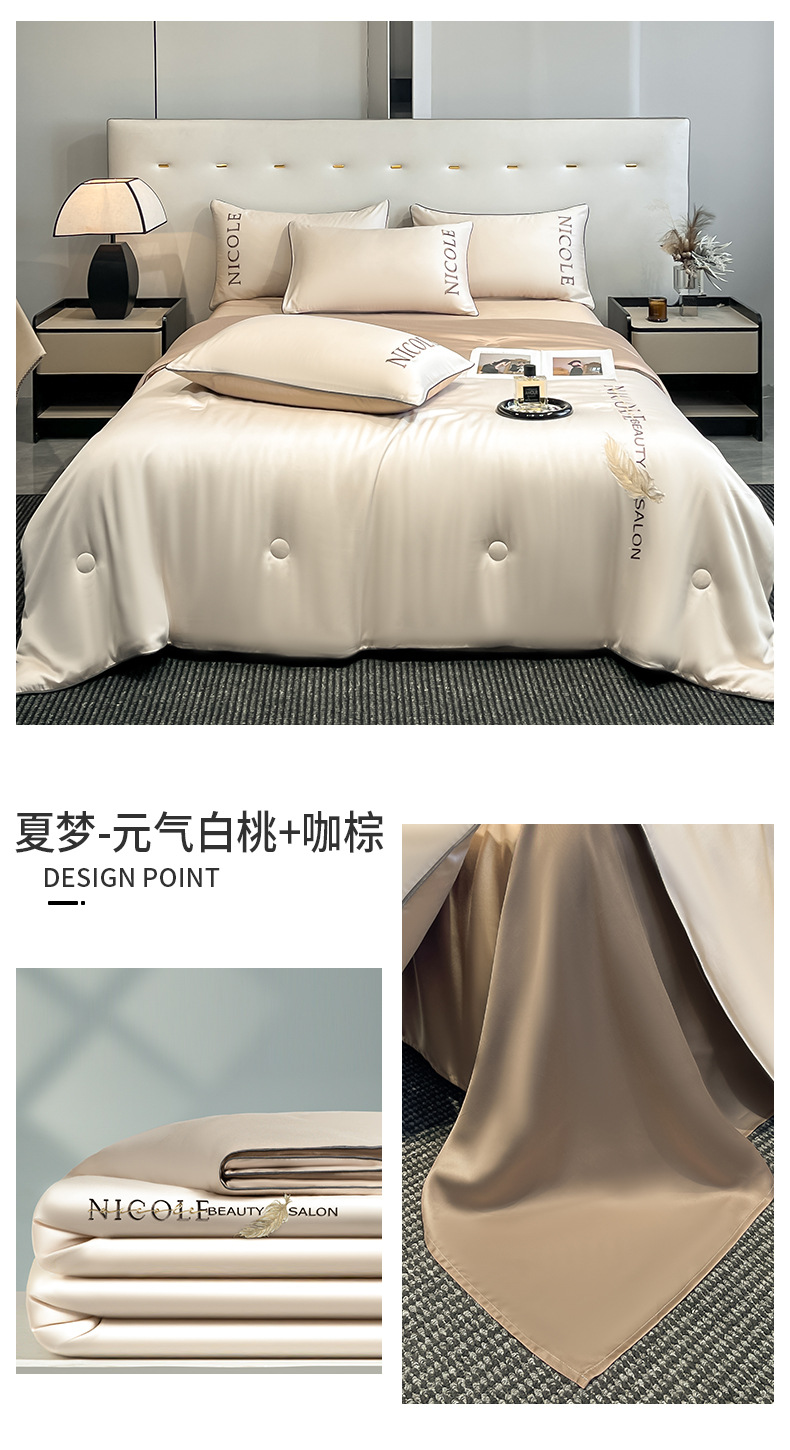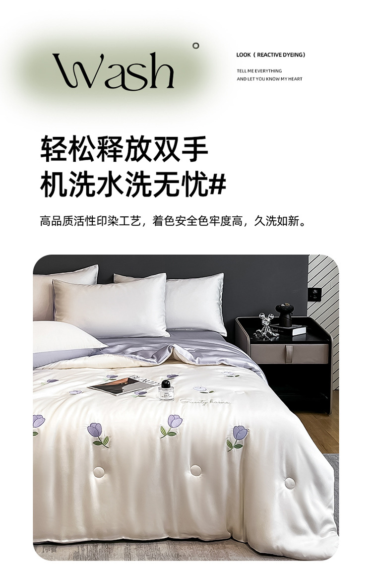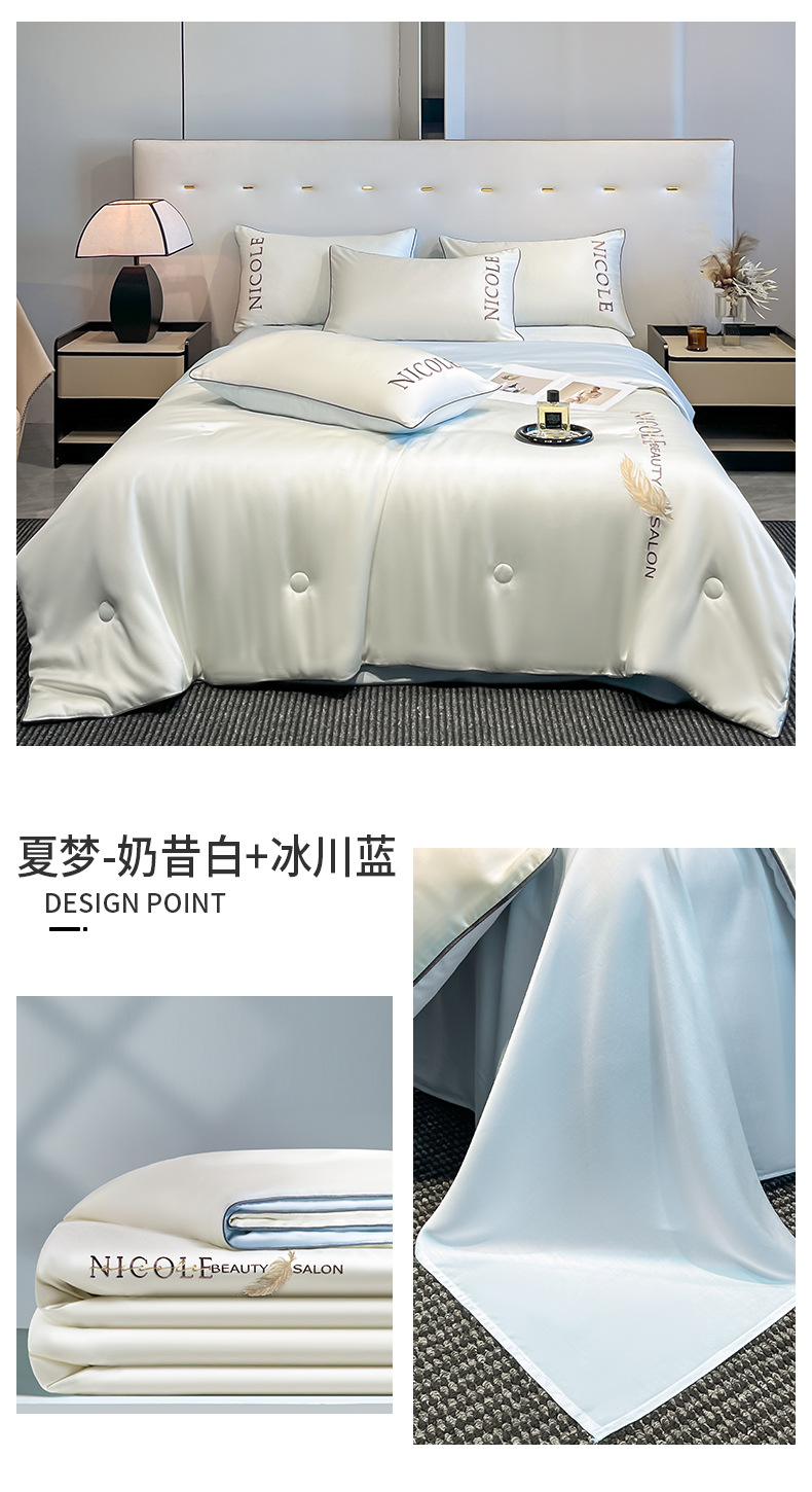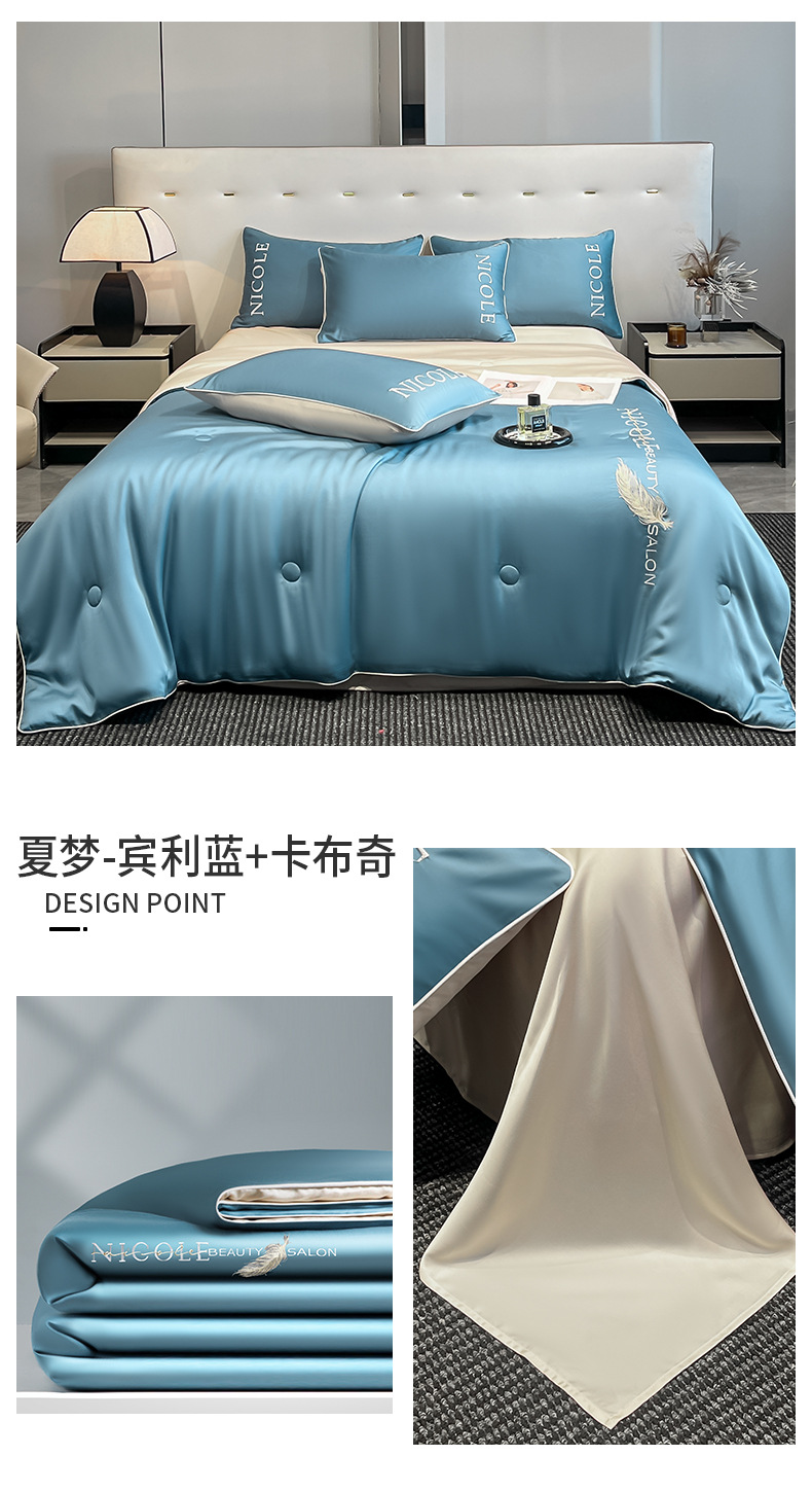 A급 여름 이불 아이스 실크 여름 이불 4종 세트 누드 수면용 실크처럼 부드러운 텐셀 자수 워시블 더블 에어컨 이불 얇은 이불스토어 가기