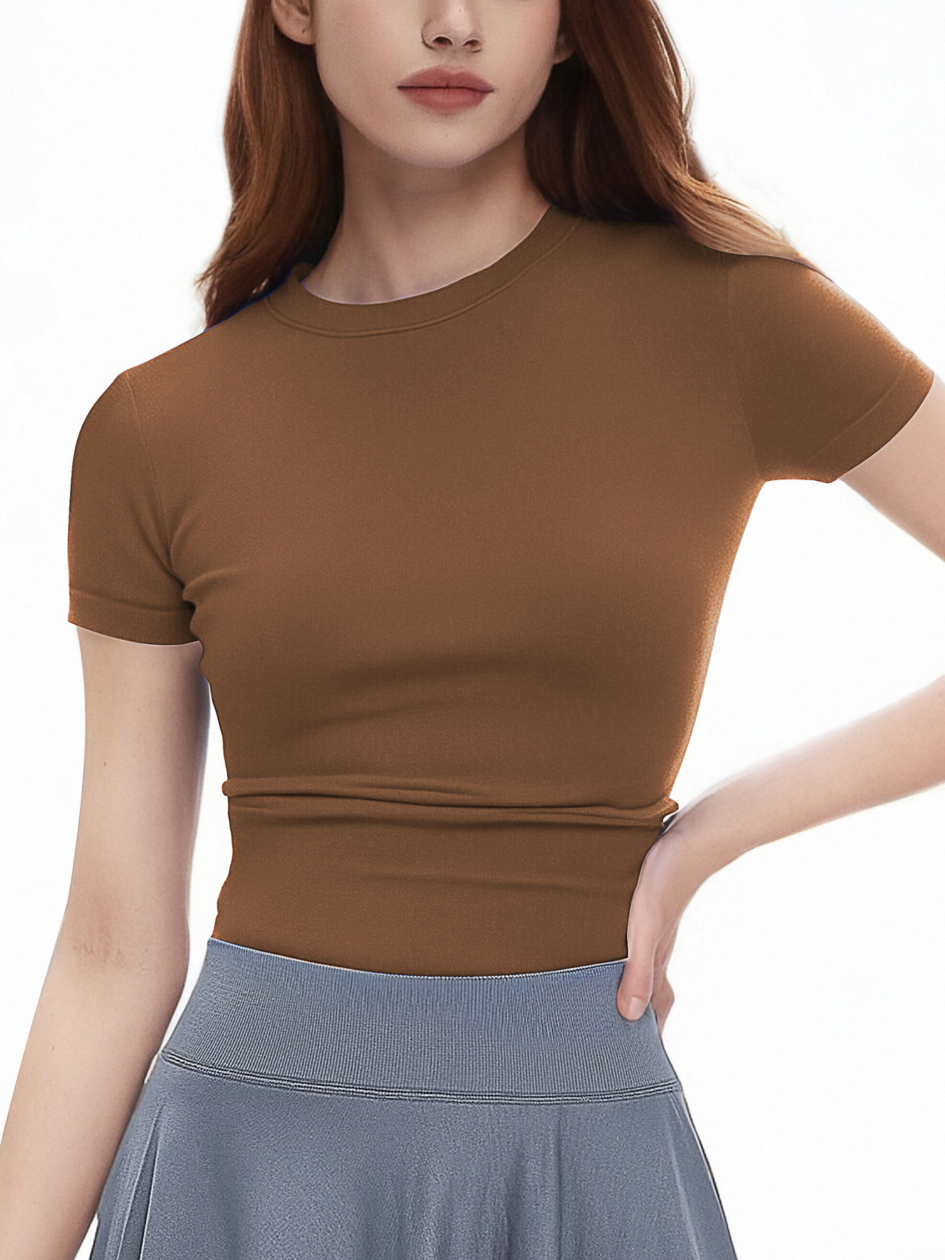 국경 간 원활한 야외 스포츠 반팔 달리기 훈련 티셔츠 여성용 슬림 핏 댄스 피트니스 높은 탄성 탑 스키 여성스토어 가기
