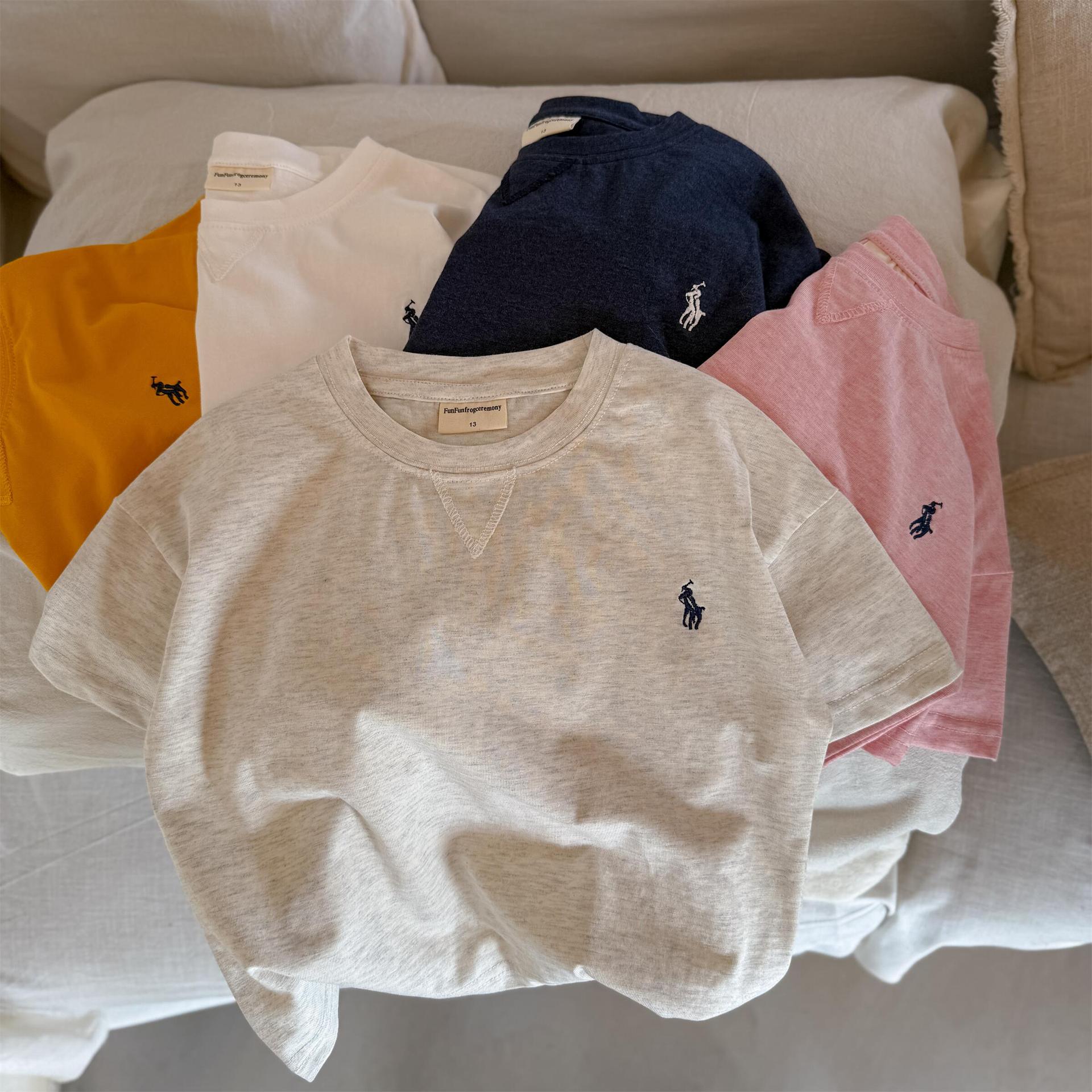 어린이 반팔 2025 여름 소년 소녀 일본 유행 브랜드 면화 아기 단색 통기성 티셔츠 도매스토어 가기