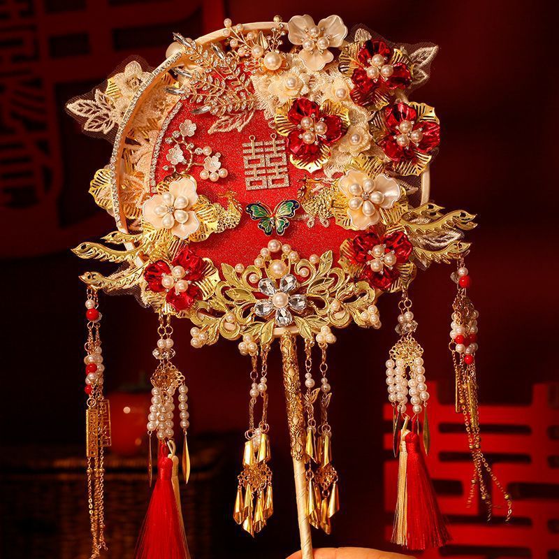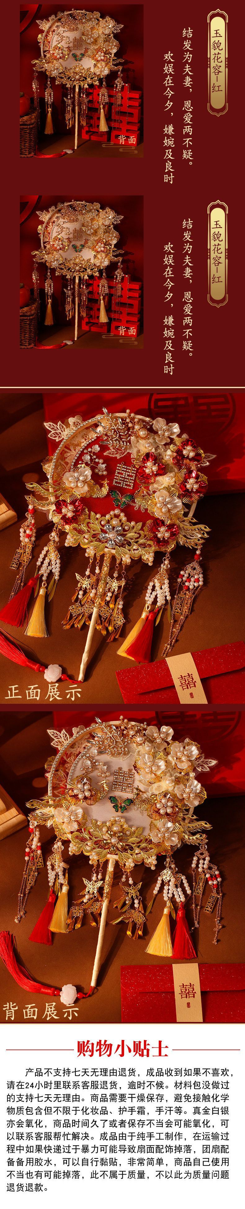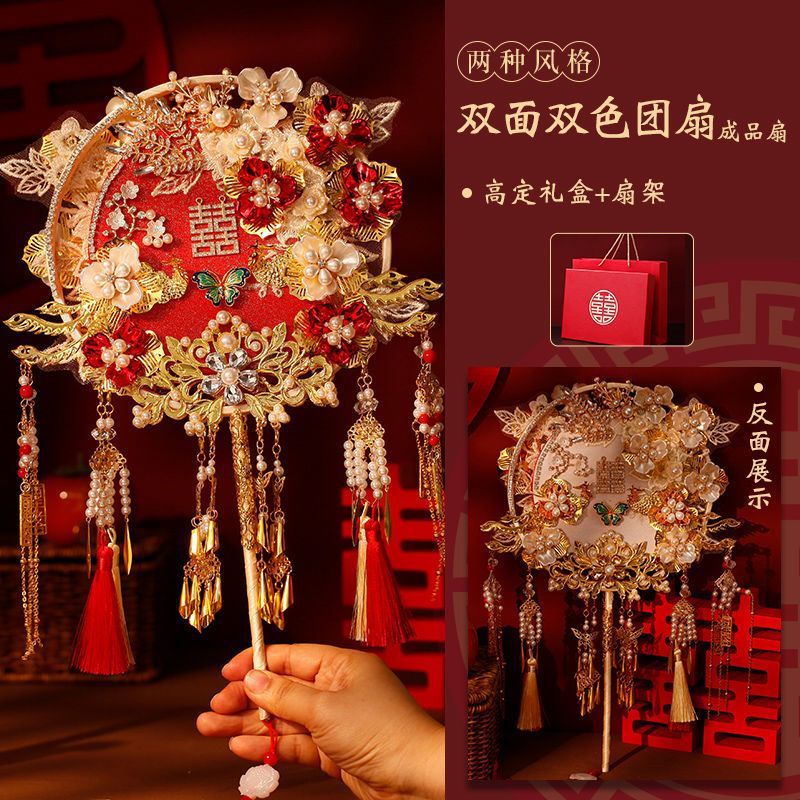레드 샴페인 양면 라운드 팬 신부 웨딩 소재 가방 팬 결혼 xiuhe 고급 해피 팬 완제품