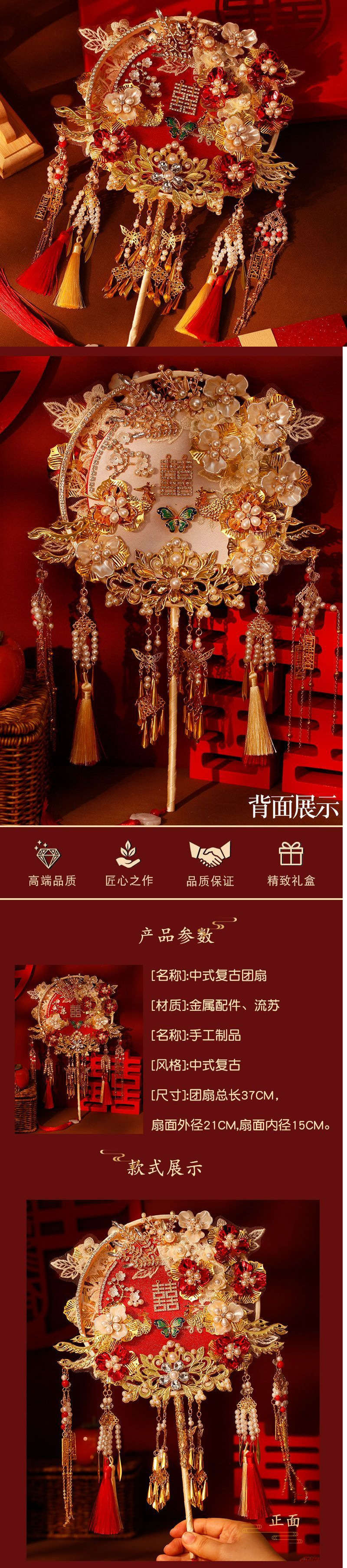레드 샴페인 양면 라운드 팬 신부 웨딩 소재 가방 팬 결혼 xiuhe 고급 해피 팬 완제품스토어 가기