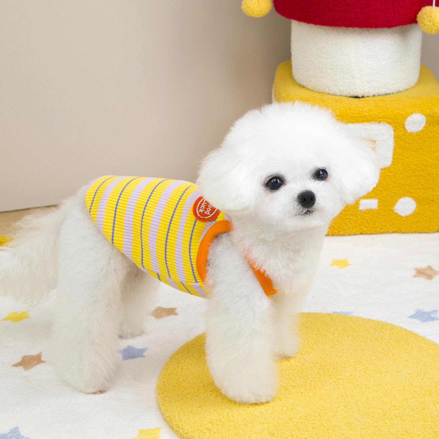 애완 동물 의류 봄과 여름 강아지 옷 고양이 옷 봄과 여름 애완 동물 용품 도매 25 컬러 바 콘트라스트 사이드 멜빵스토어 가기