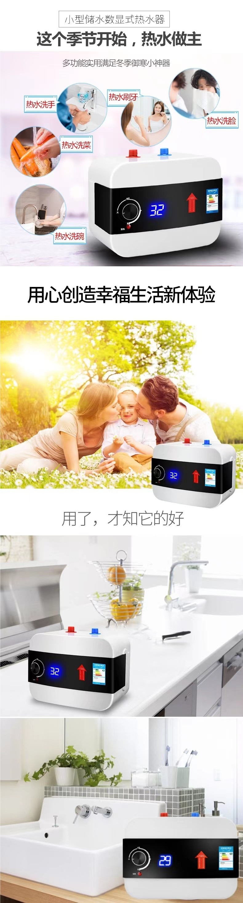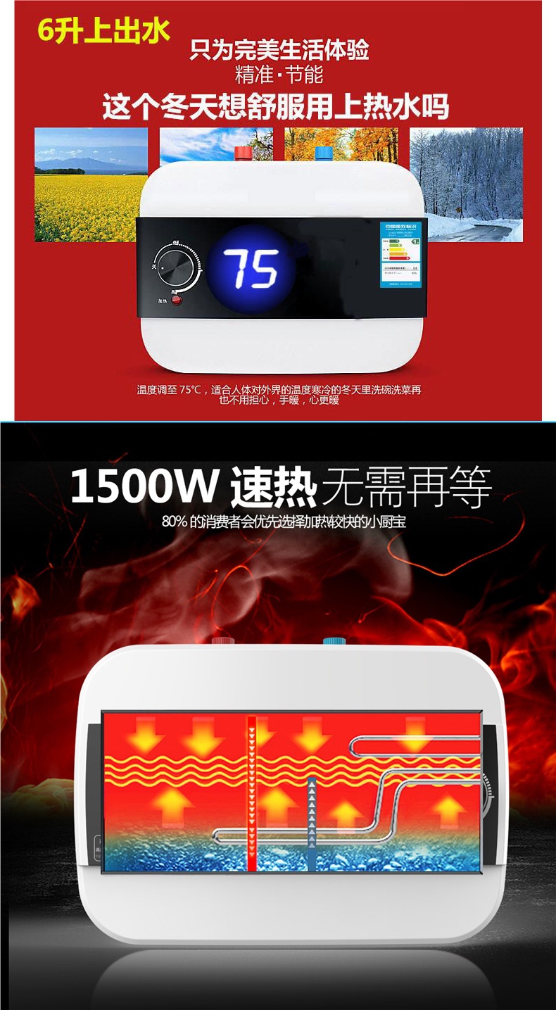 스미스 작은 부엌 온수기 가정용 작은 전기 히터 즉시 열 주방 그릇 세척 뜨거운 물 보물
