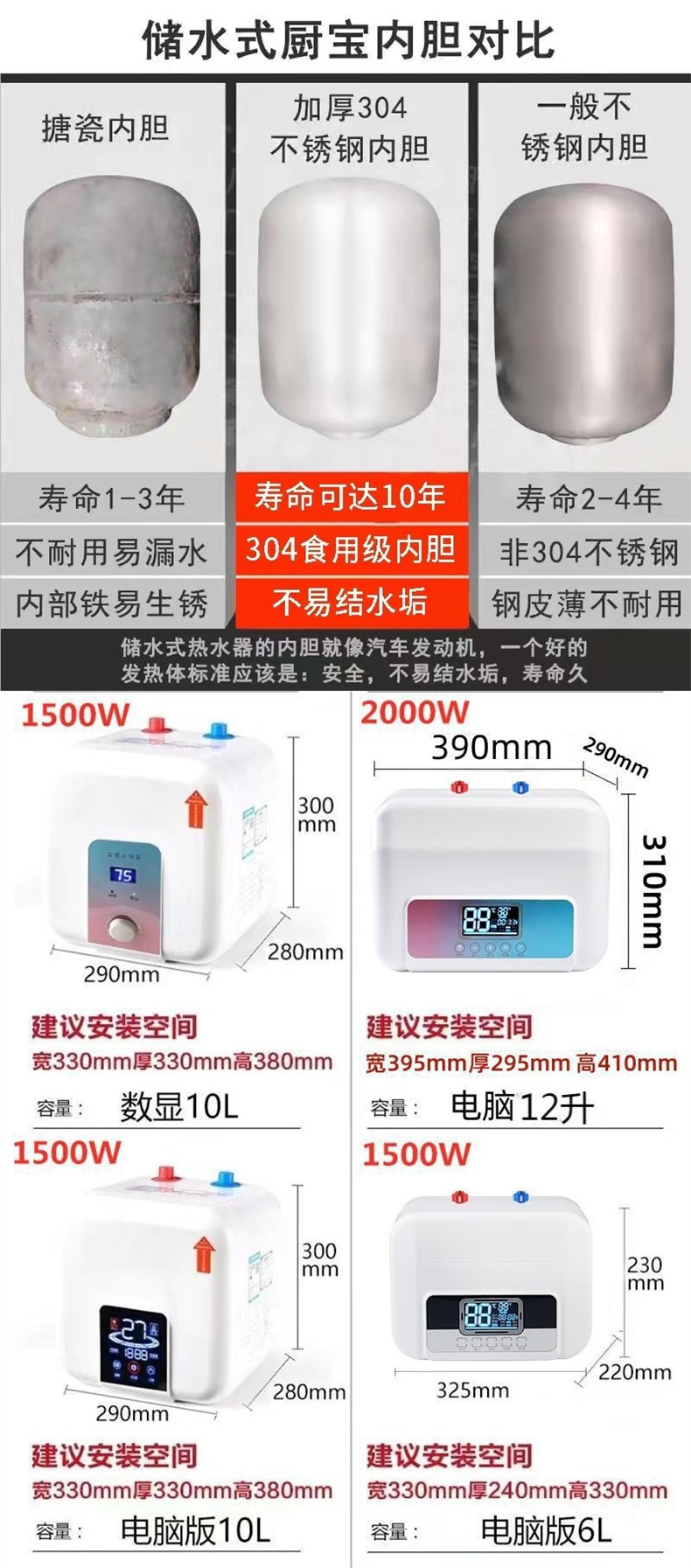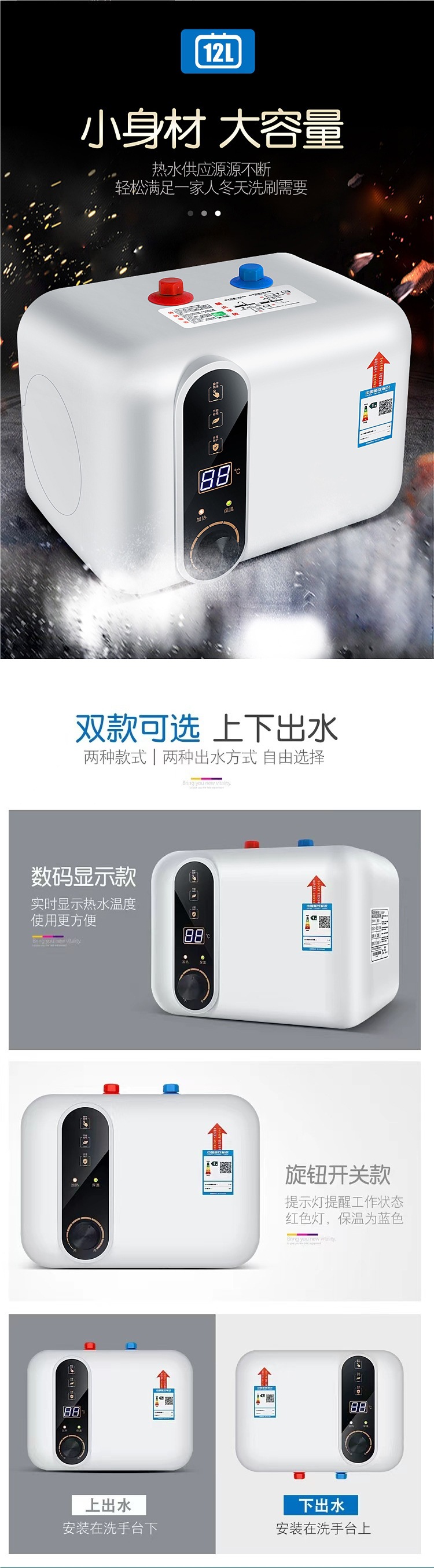 스미스 작은 부엌 온수기 가정용 작은 전기 히터 즉시 열 주방 그릇 세척 뜨거운 물 보물스토어 가기