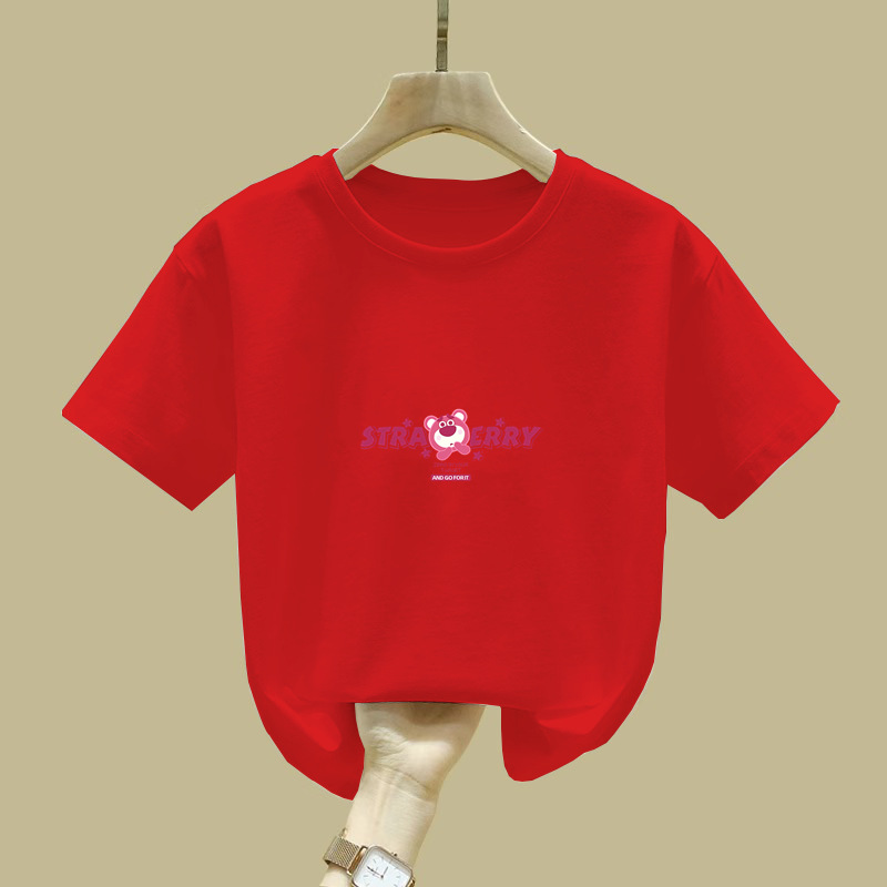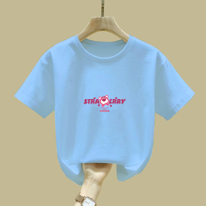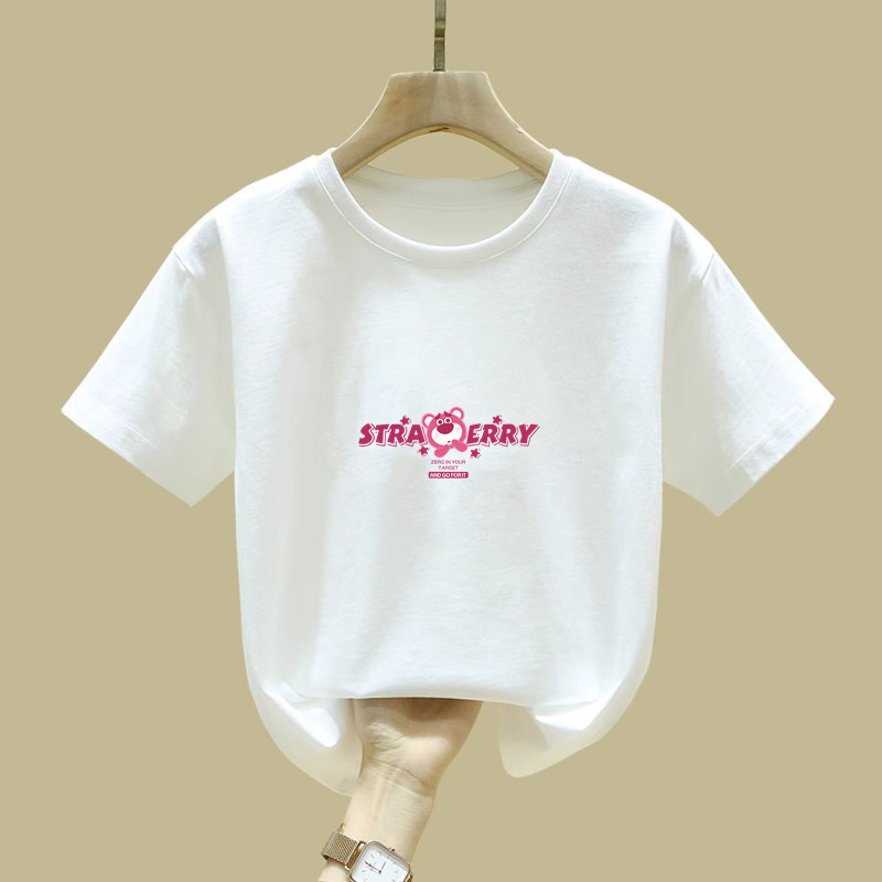 2377 # 코튼 아동복 걸스 반팔 티셔츠 어린이 반소매 빅 어린이 탑 여름 새 만화 탑스토어 가기