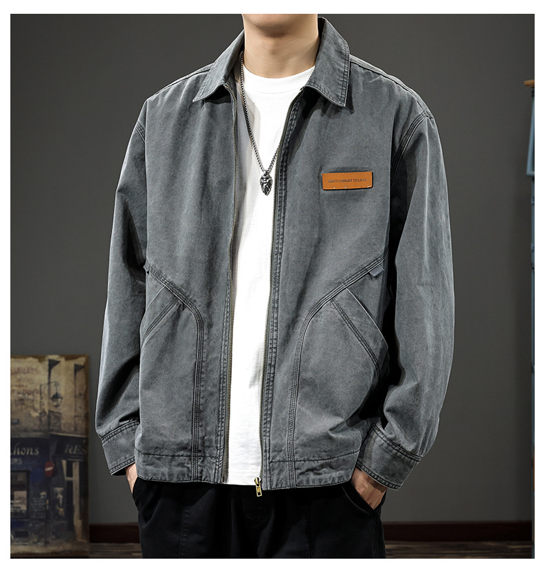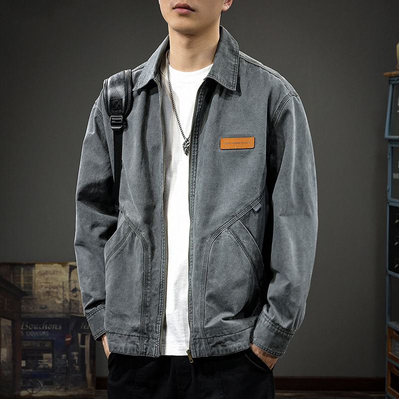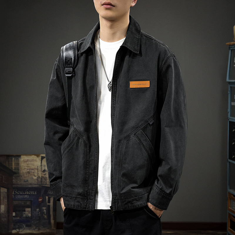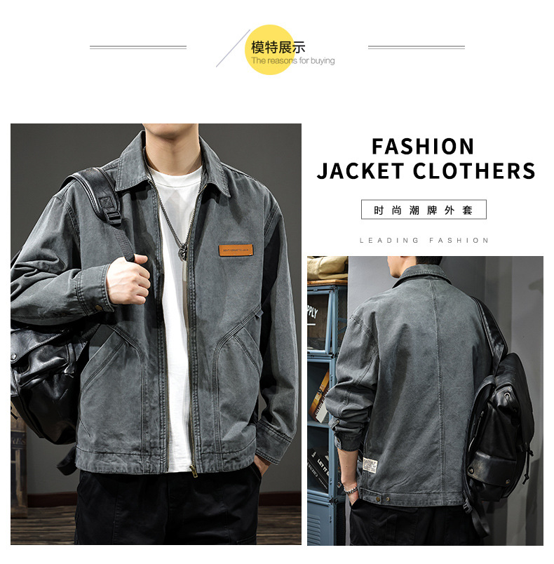 2025 봄과 가을 새로운 캐주얼 옷깃 재킷 남자 봄 고급 호박 잘 생긴 남자 디트로이트 프록 탑스토어 가기