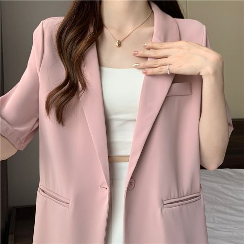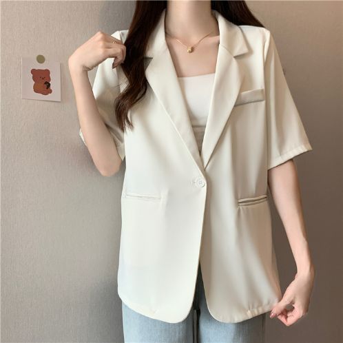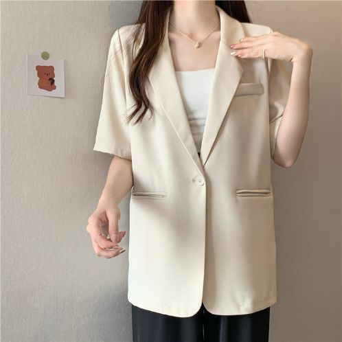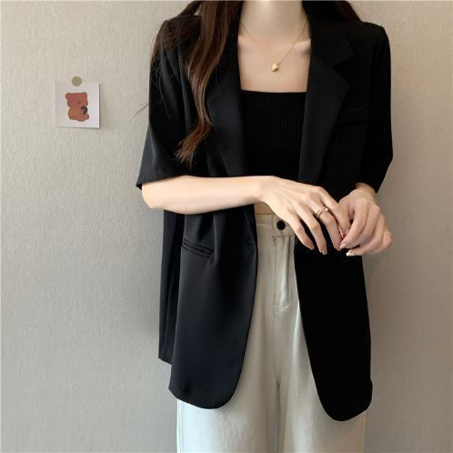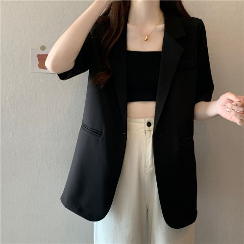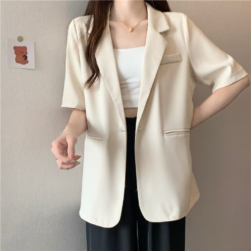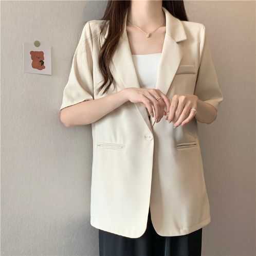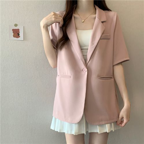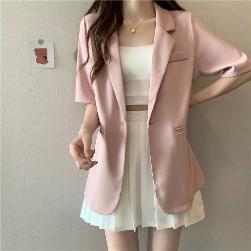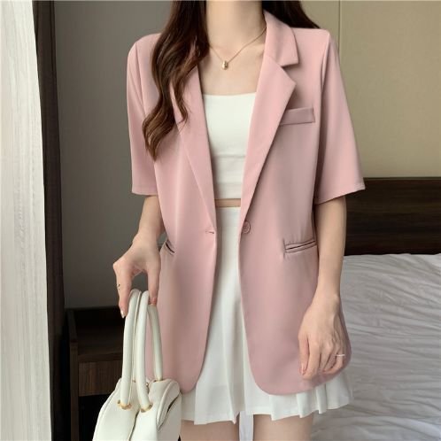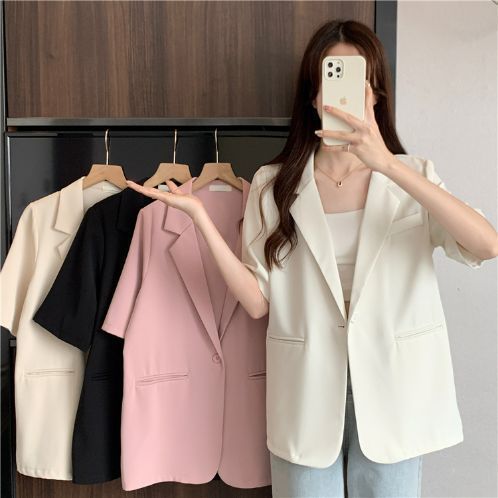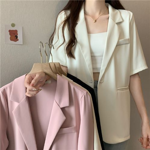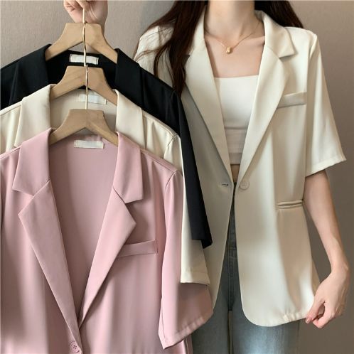 얇은 세트 여자 2025 년 여름 새로운 한국식 세트 재킷 캐주얼 느슨한 올매치 쇼트 슬리브 탑