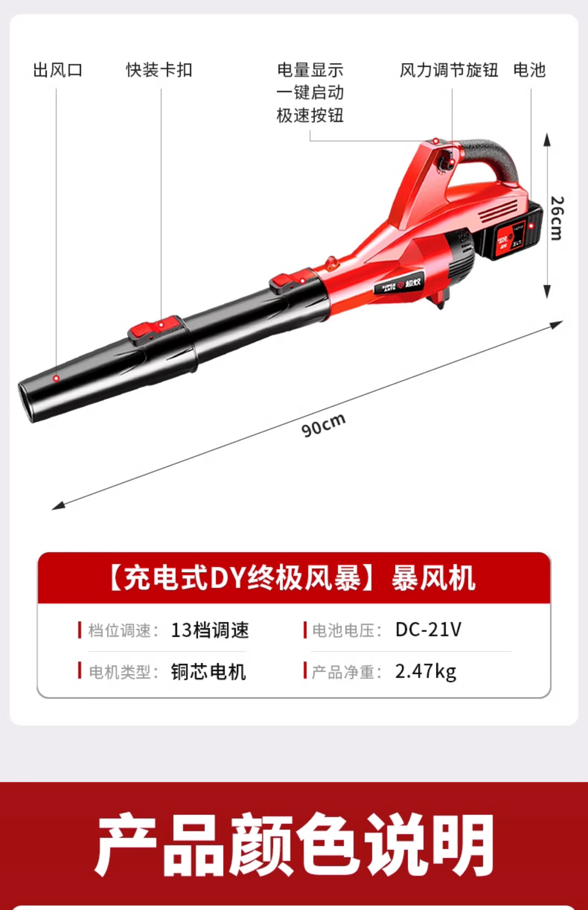 • 레벨 27 풍력 - DY 스톰 [모델] 6.0Ah 폭풍우 기계, 1회 충전 및 1회 충전