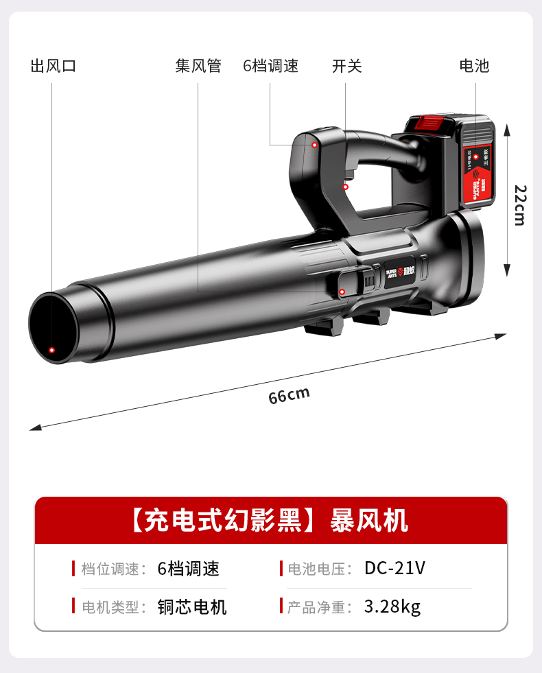 • 25단계 풍력 - 충전식 - 6단 속도 조절 [모델] 6.0Ah 폭풍우 기계, 1회 충전 및 1회 충전(팬텀 블랙)
