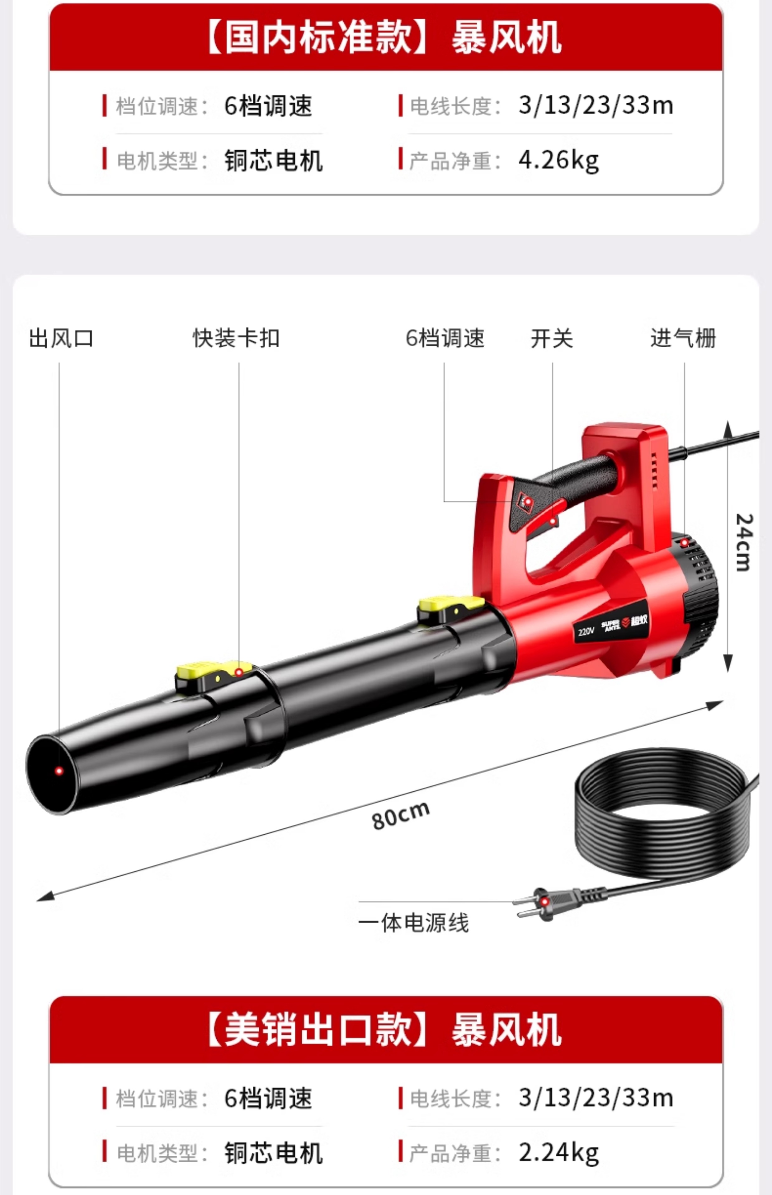 • 30단 풍력[미국 판매 수출 모델] 6800-6단 속도 조절 + 33m라인