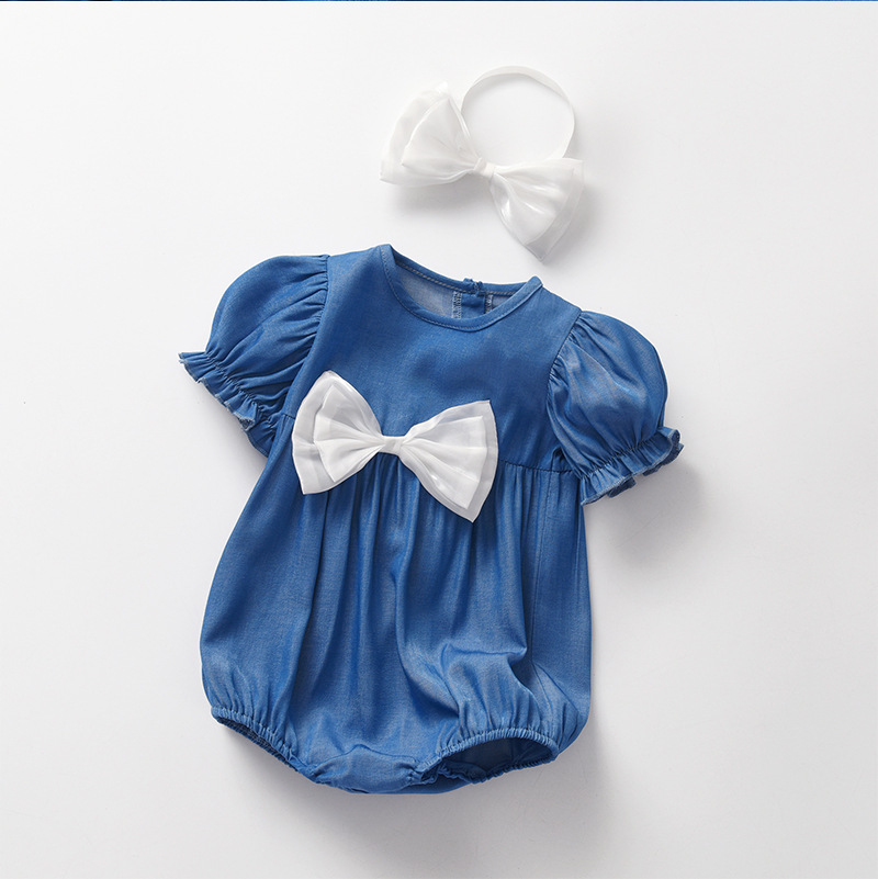 두 조각 세트 여름 신생아 소녀 삼각형 반팔 토끼 옷 헤어 벨트 데님 공주 여름 대외 무역