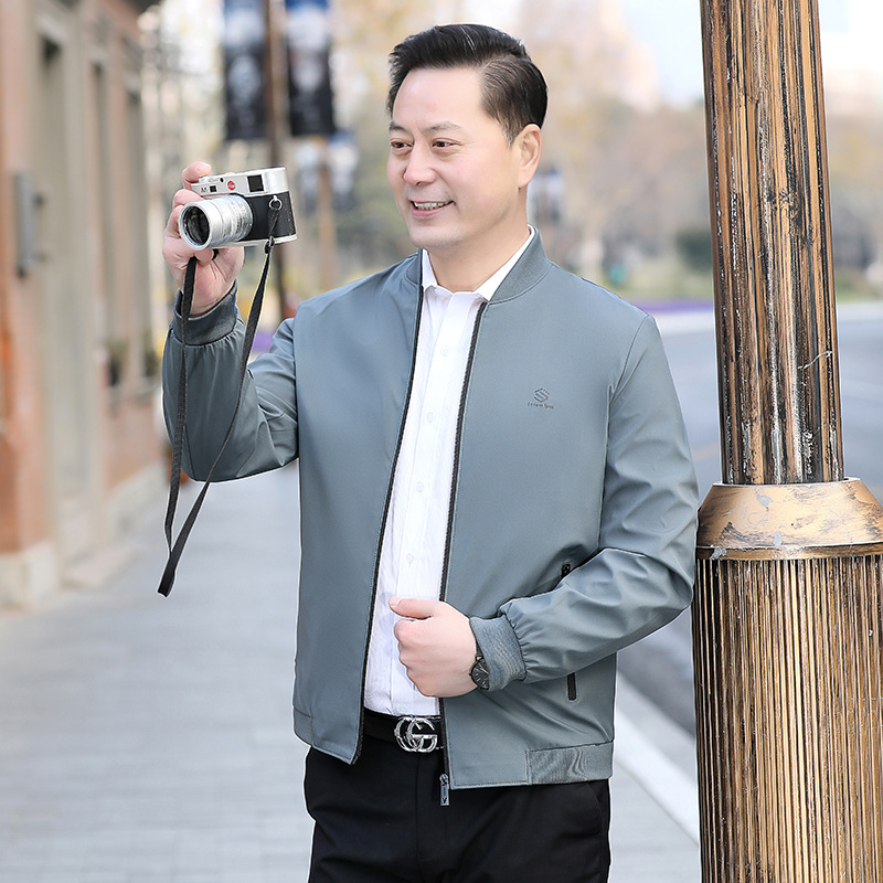 봄과 가을 중년 남성 수직 칼라 재킷 아빠의 지퍼 카디건 남성 중년 및 노인 남성 얇은 재킷 캐주얼 탑스토어 가기