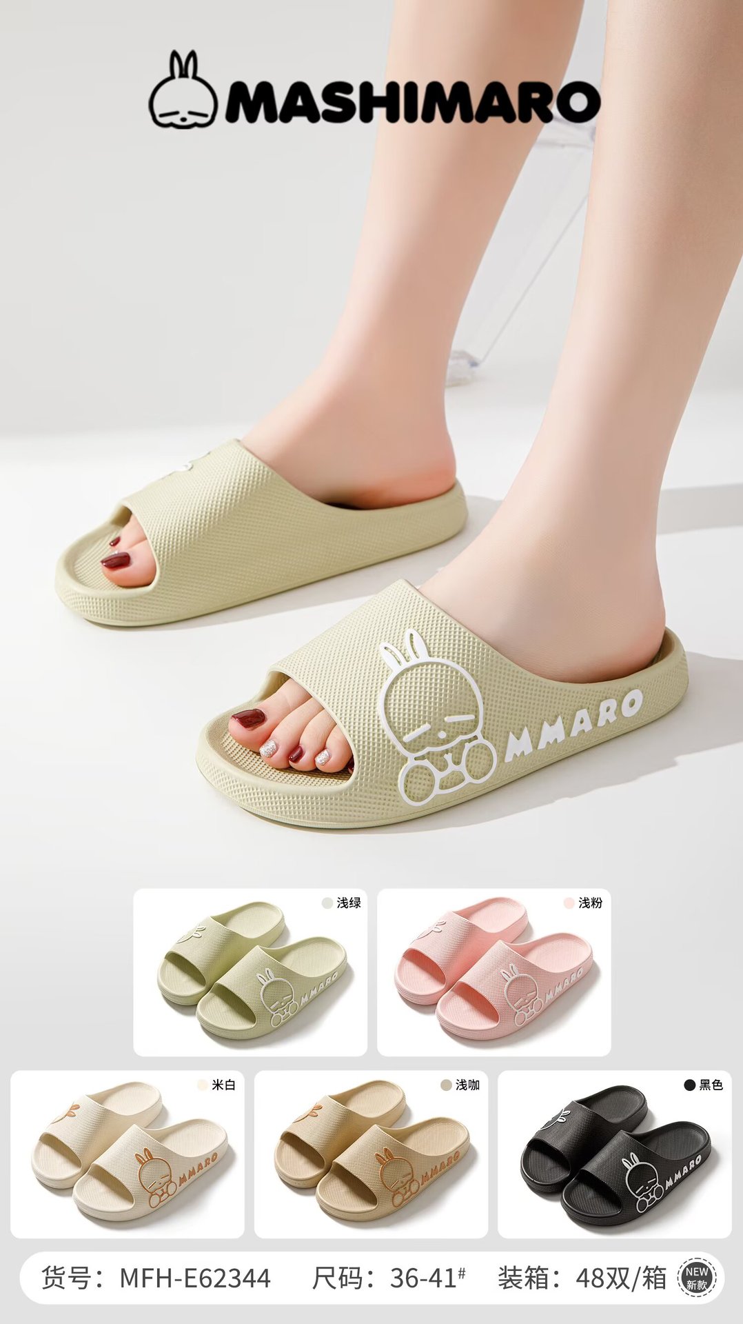 버그 토끼 슬립 파스 슬리퍼 여성 여름 2025 새로운 홈 실내 미끄럼 방지 욕실 수영복 에바 샌들
