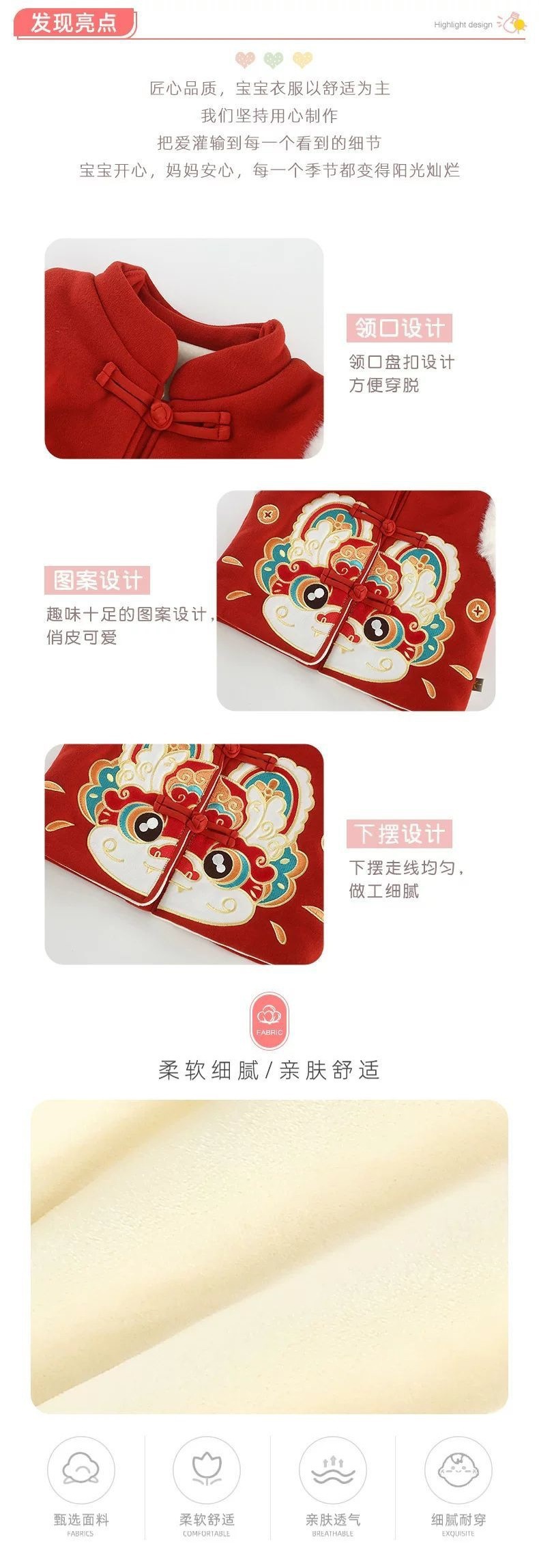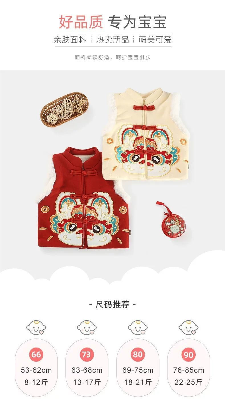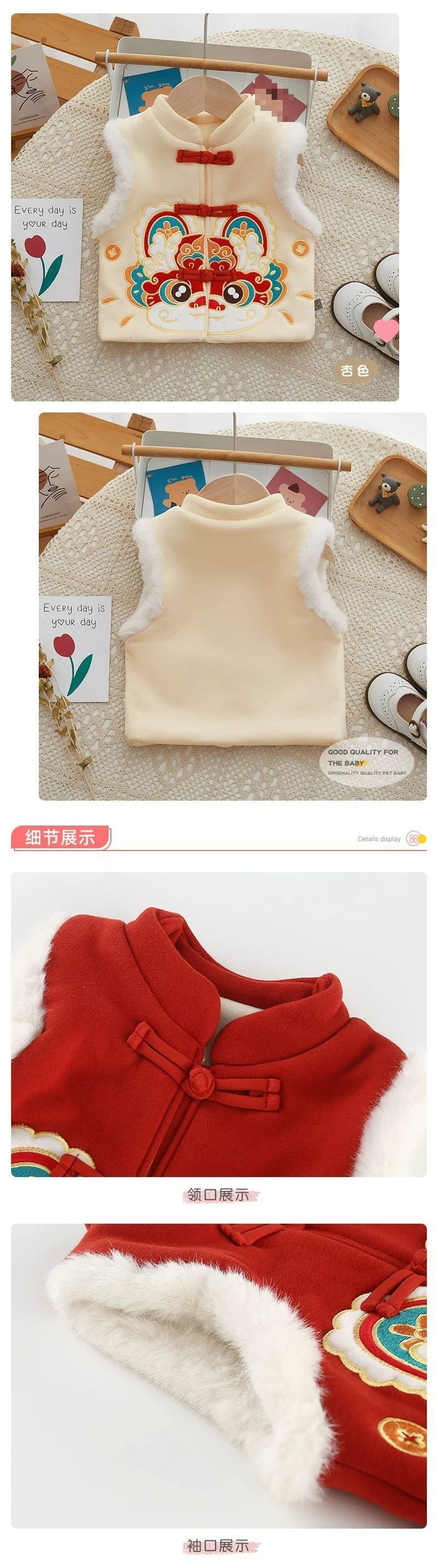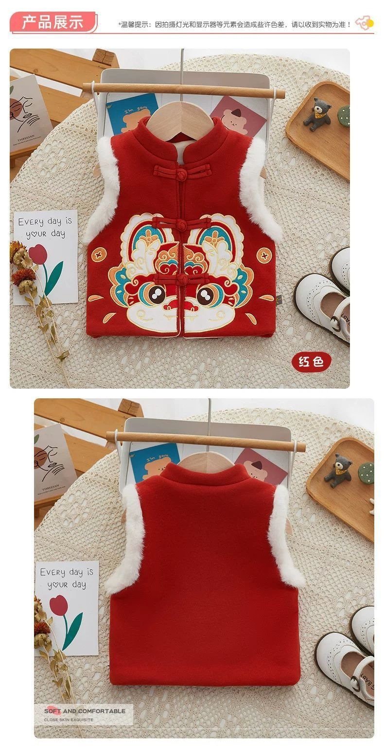 어린이 조끼 겨울 기모 가을과 겨울 아기 조끼 소년 중국 사자 댄스 전국 스타일 소녀 신년 의상