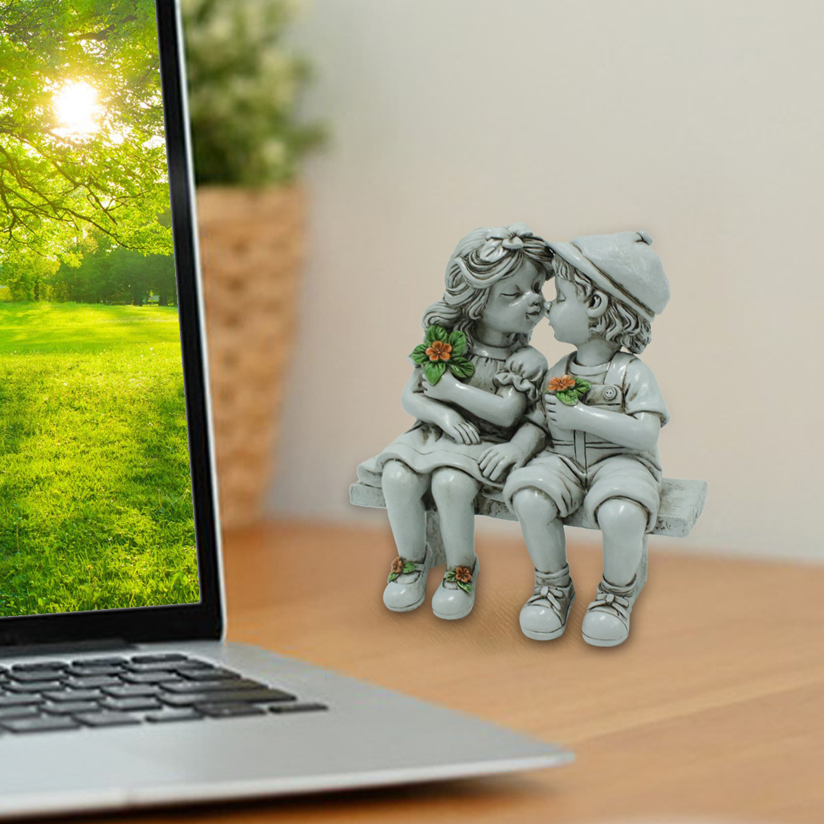 재고 새로운 스타일 앉아 의자 소년과 소녀 수지 장식 정원 안뜰 잔디 장식 동화 마이크로 풍경스토어 가기
