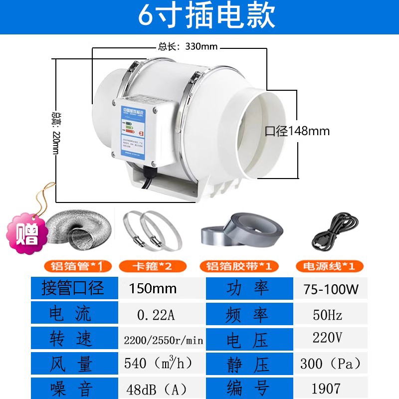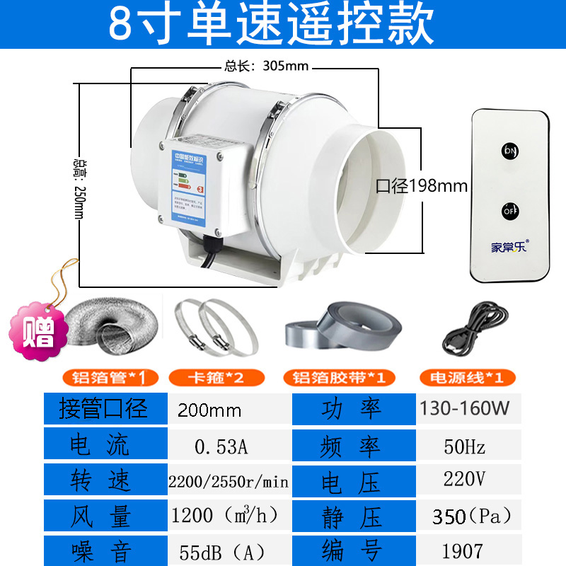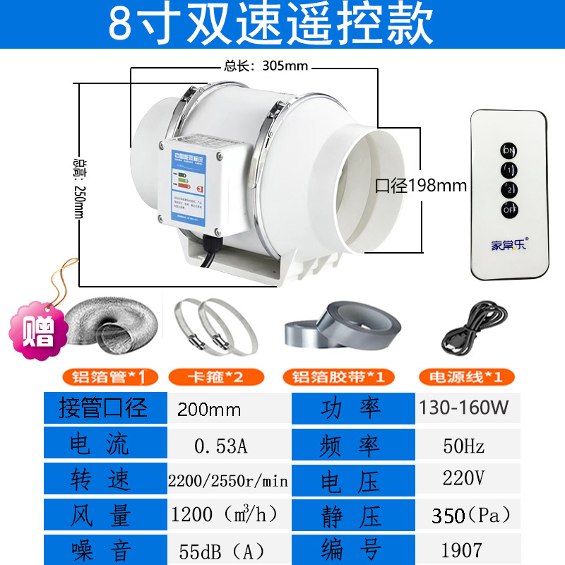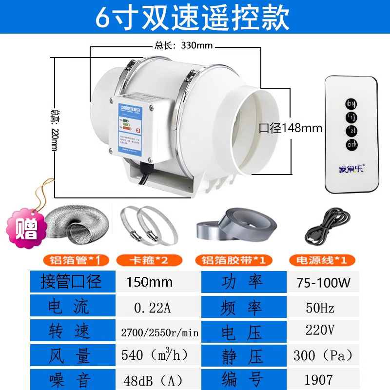 덕트 부스터 팬 주방 팬 6 인치 8 인치 원격 제어 음소거 속도 조절 환기 팬 산업용 배기 팬스토어 가기