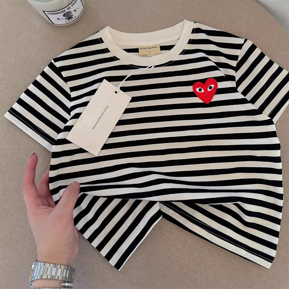 어린이 클래스 A 티셔츠 2025 여름 소년 소녀 일본 유행 브랜드 사랑 바닥 아기 줄무늬 어린이상의 도매스토어 가기