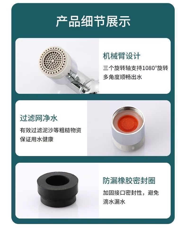 360 도 회전 수도꼭지 기계 팔 주방 회전 욕실 세척 세척 세척 확장 스플래시 노즐스토어 가기