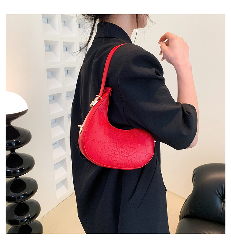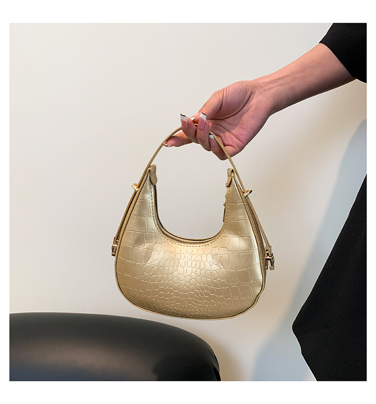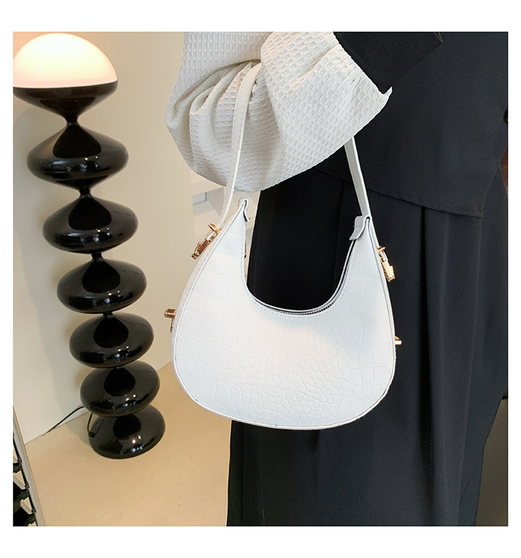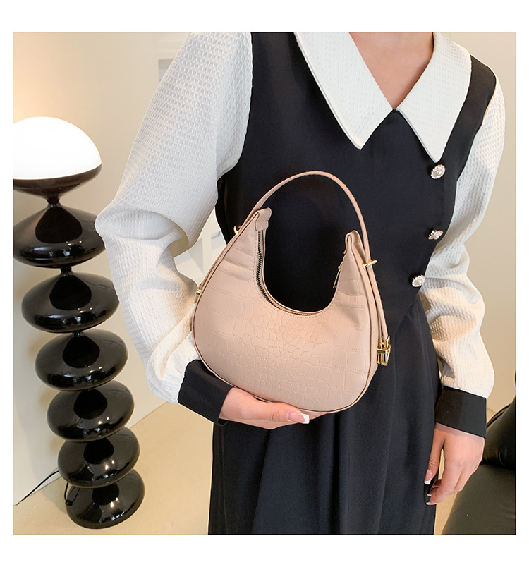 틈새 악어 패턴 가방 여성 2025 새로운 스타일 독특한 겨드랑이 크레센트 가방 인터넷 인기있는 올 매치 핸드백 크로와상 가방