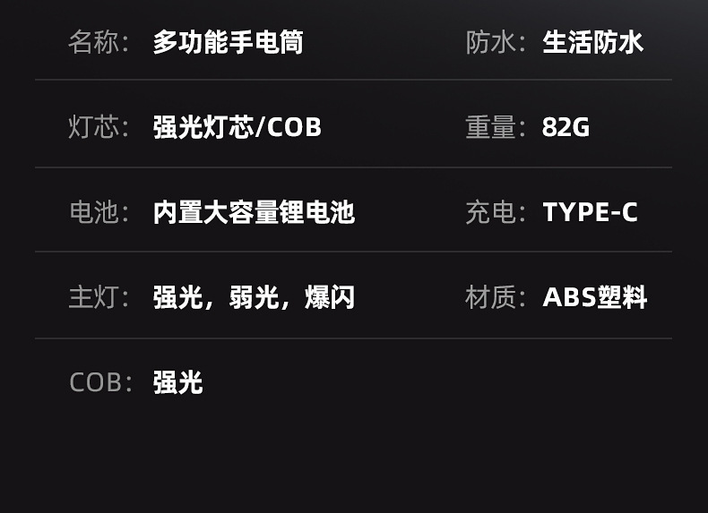 • 블랙 미니 손전등 [측면 조명 + 출력 기능 포함]