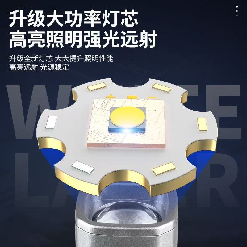 새로운 국경 간 흰색 레이저 밝은 손전등 야외 방수 텔레스코픽 줌 조명 손전등 휴대용 도매
