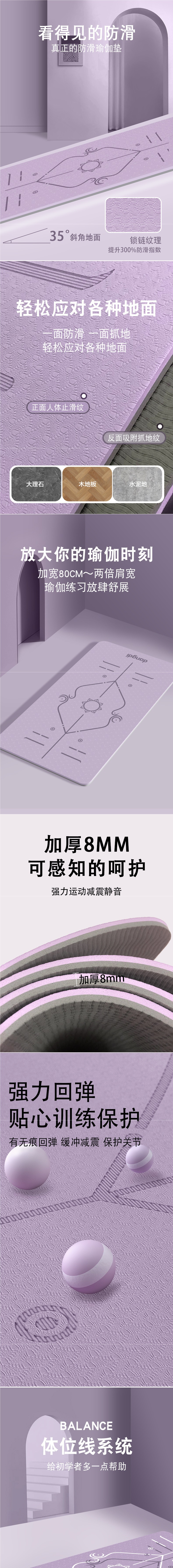 • 자세라인 퍼플, 그레이 2컬러 - 185*80cm 3종세트 [요가매트+로프+백팩]