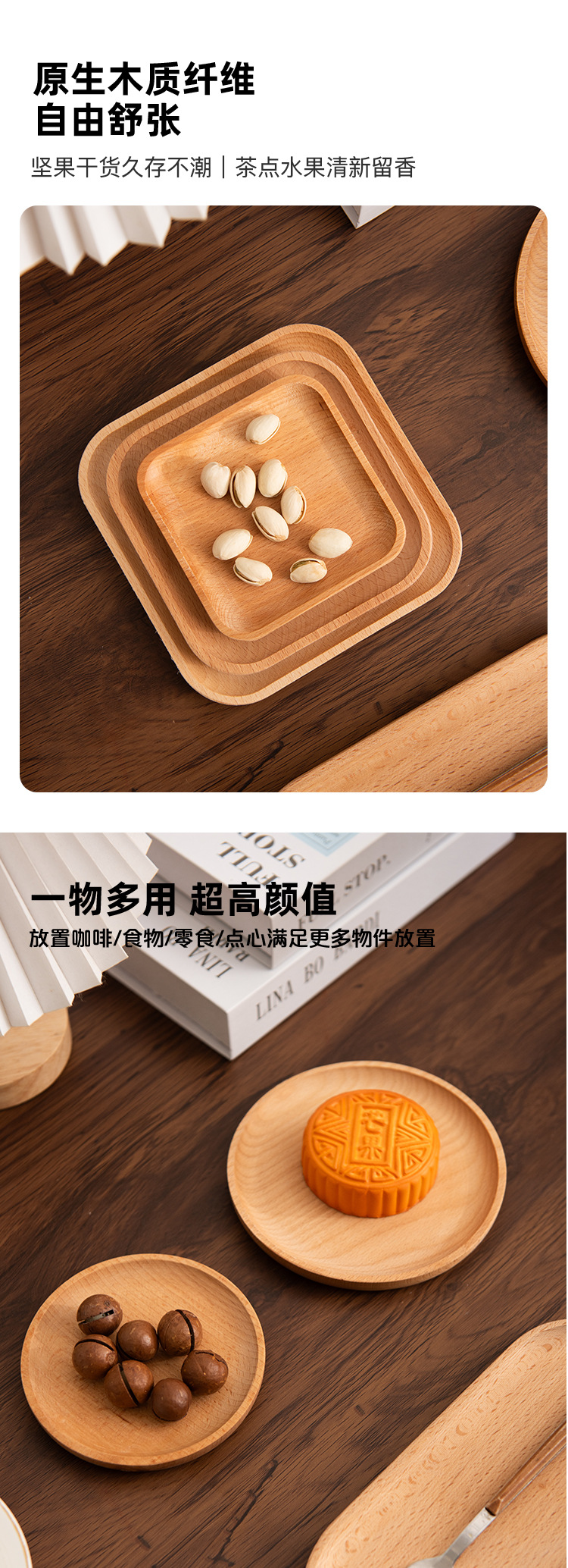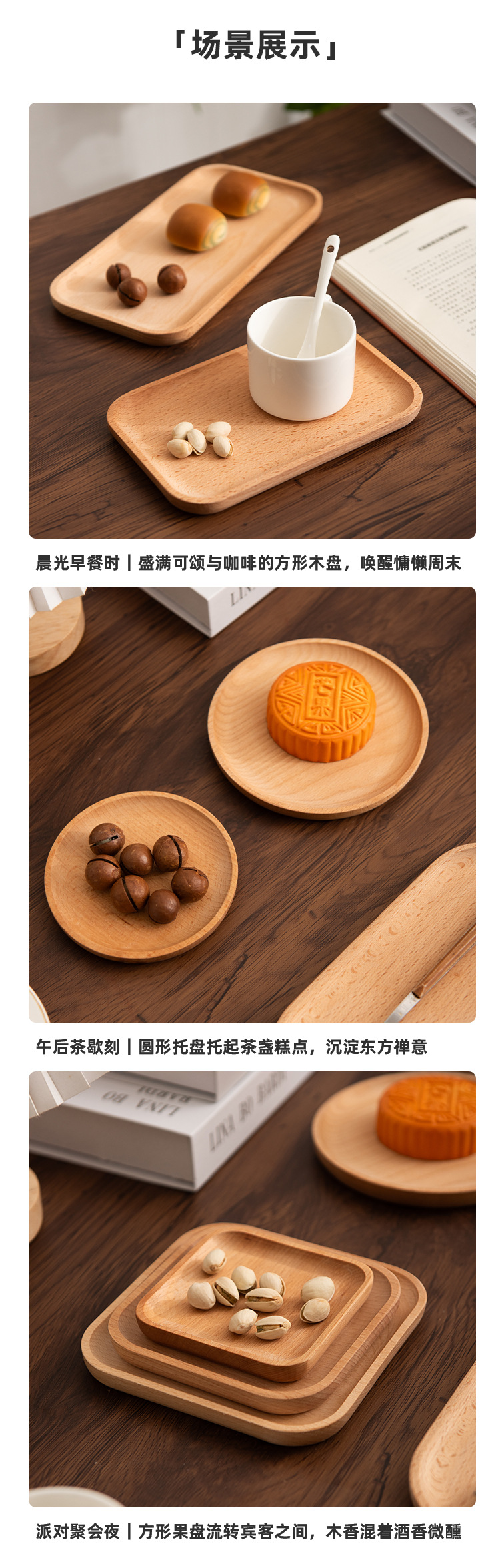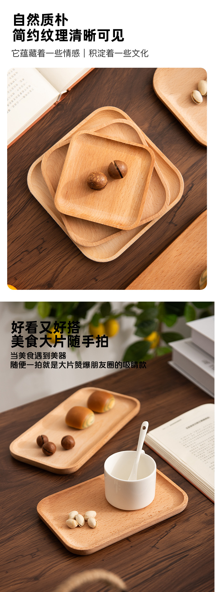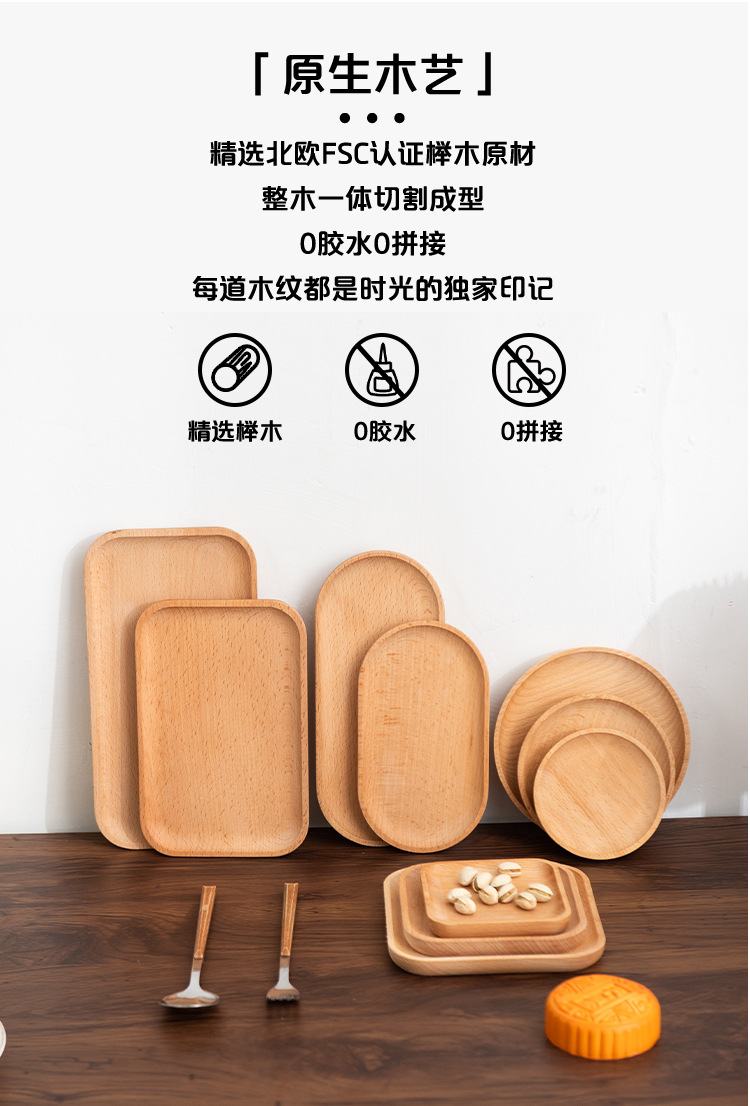너도밤 나무 일본식 단단한 나무 접시 나무 트레이 차 트레이 가정용 말린 과일 플레이트 라운드 스퀘어 나무 접시 디저트 푸드 플레이트스토어 가기