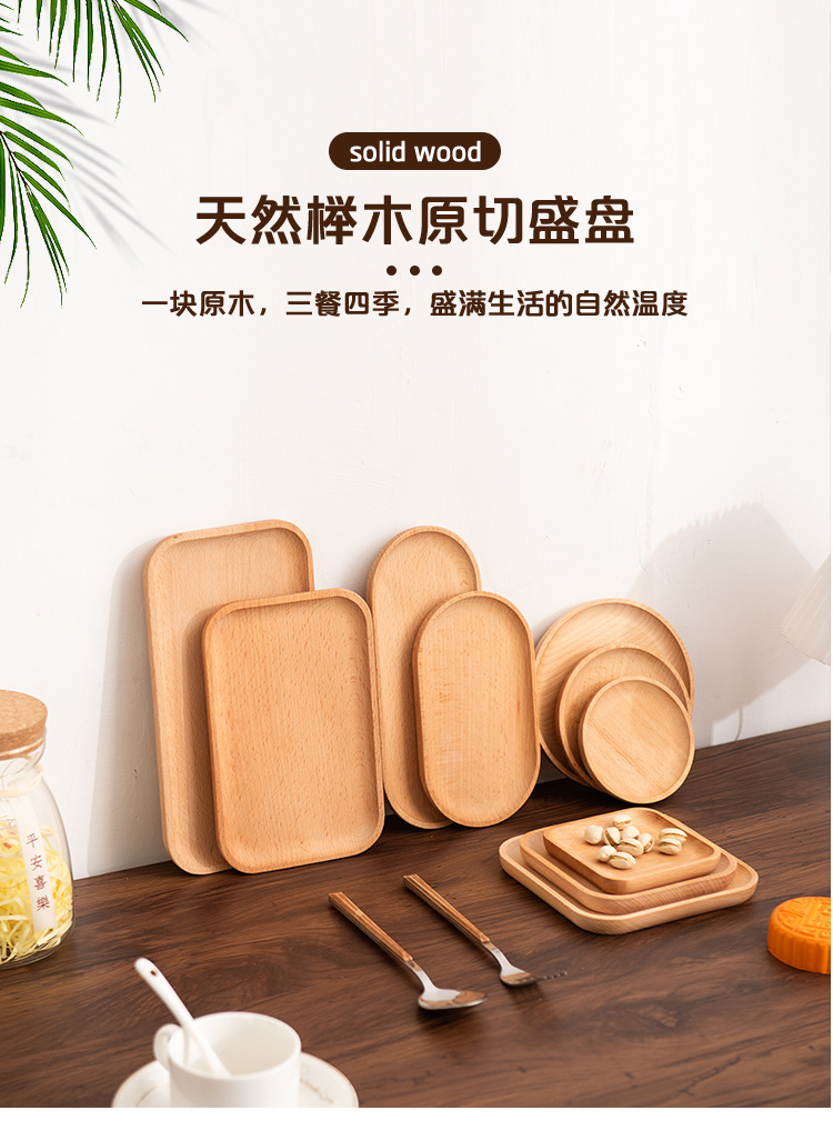 너도밤 나무 일본식 단단한 나무 접시 나무 트레이 차 트레이 가정용 말린 과일 플레이트 라운드 스퀘어 나무 접시 디저트 푸드 플레이트